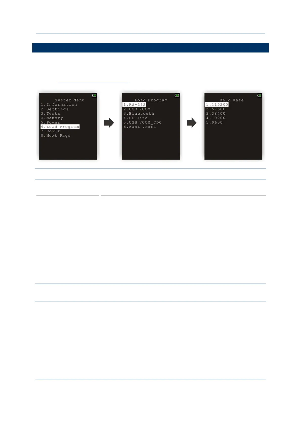 Program submenu you will be able to select whether to download a C program (.SHX) or