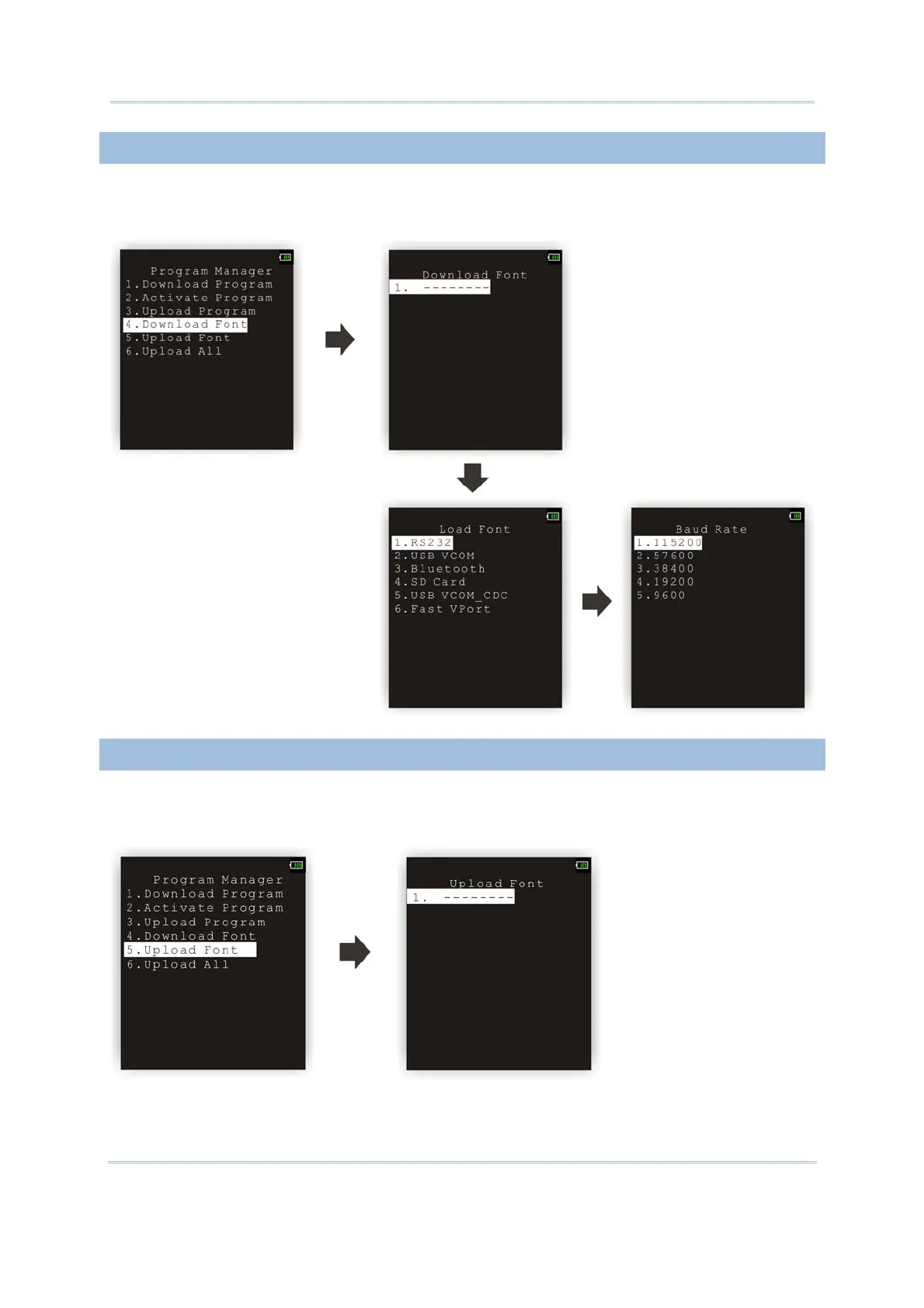 The terminal computer can be loaded with up to 6 font files. Users can input characters in