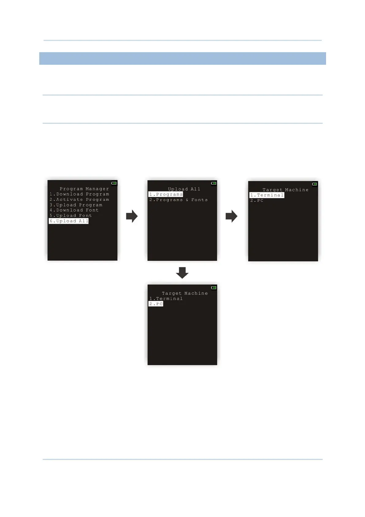 You can determine to upload programs only, or clone programs and fonts altogether.
