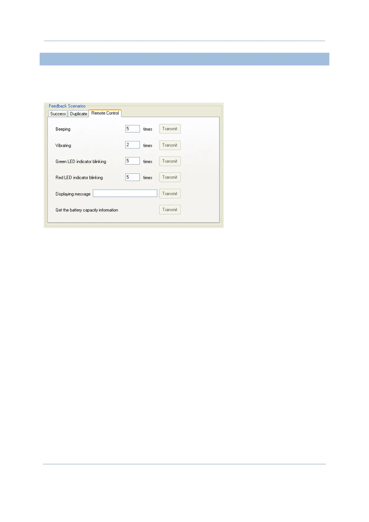 Beeping: With a value entered into the field, click the Transmit button to have the