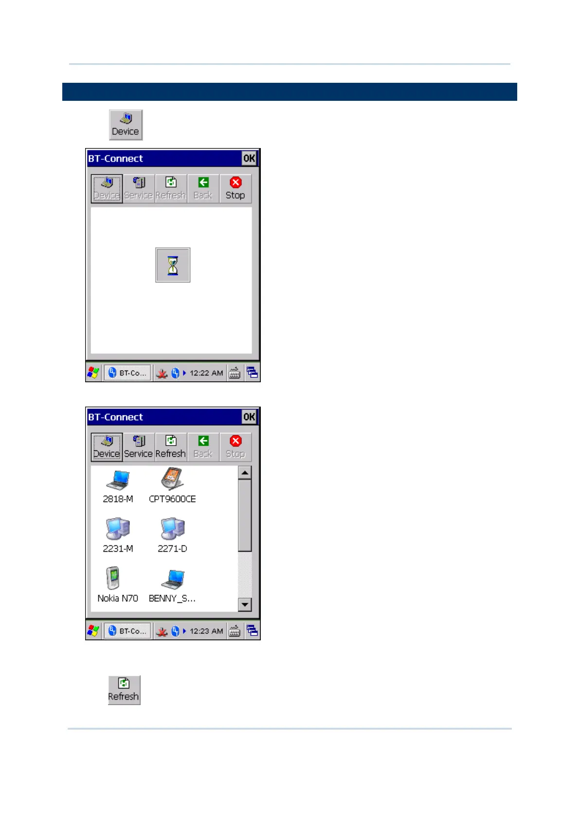 1) Tap to discover nearby Bluetooth devices.