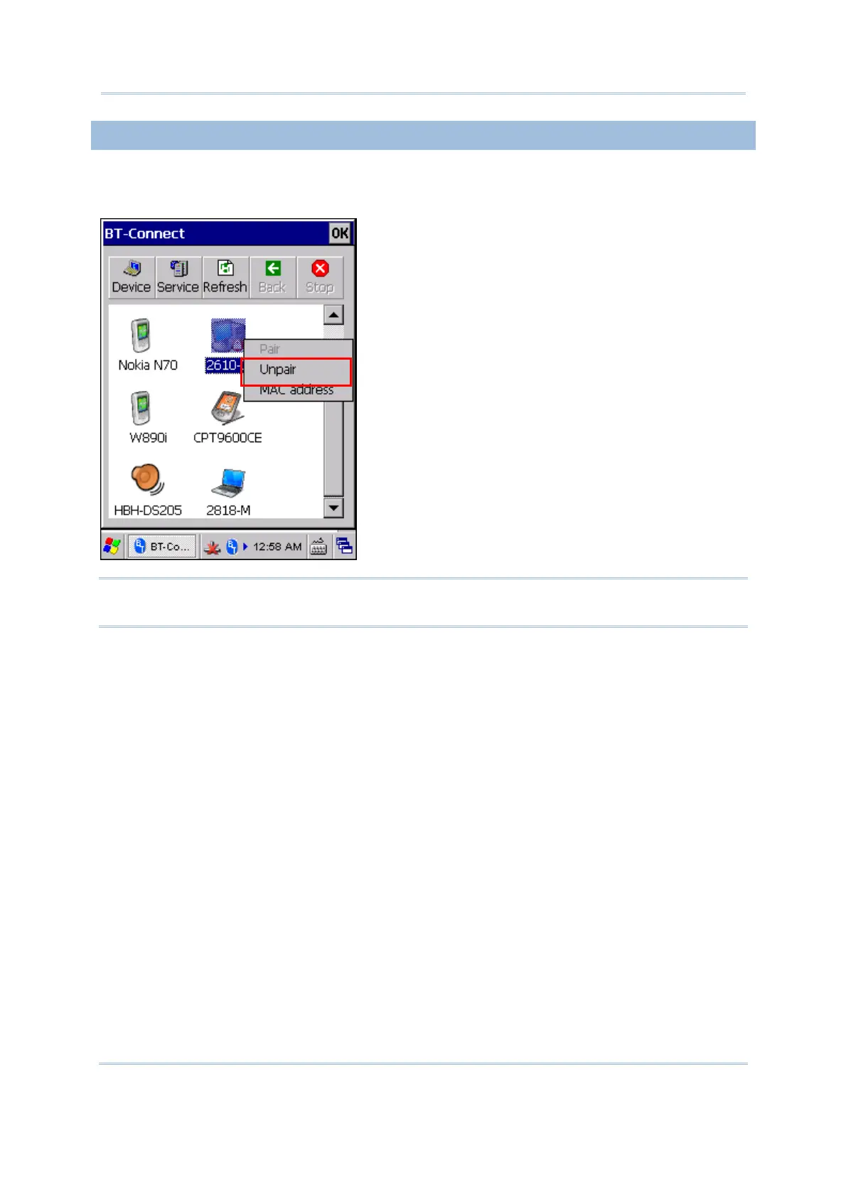 Note: The mobile computer must be unpaired on the remote device as well. For