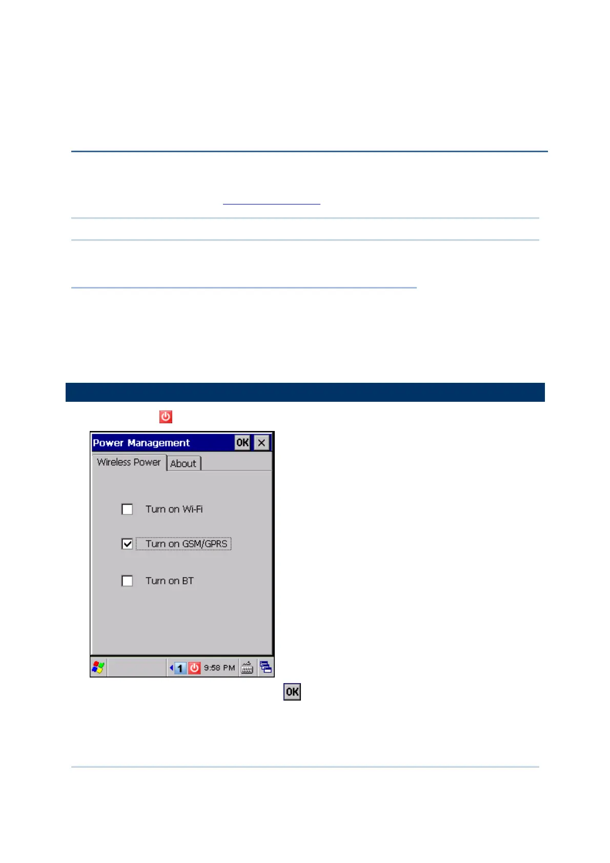 2) Select [Turn on GSM/GPRS] and tap
