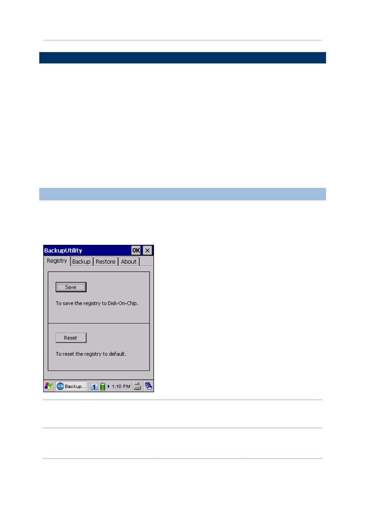 registry to "\DiskOnChip\Sysbak\Registry.dat".