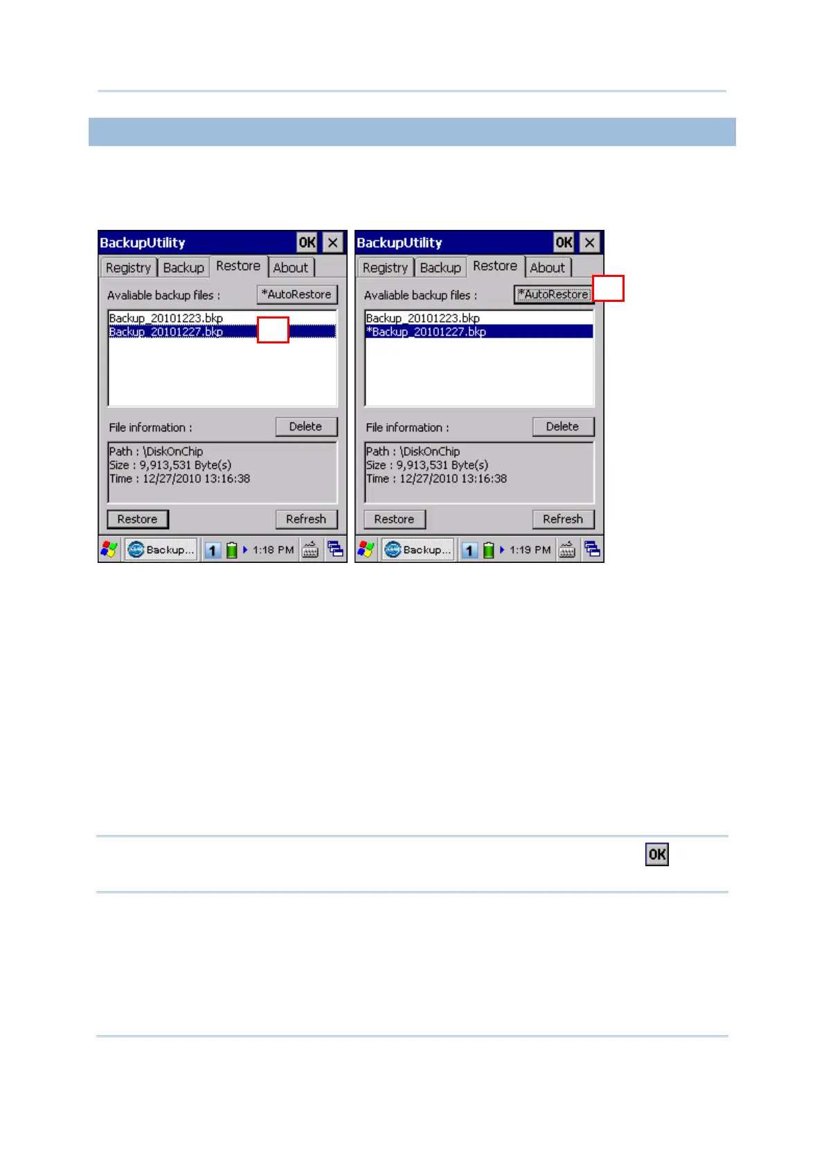 If a backup file has been selected for Auto Restore in your last operation, it will be