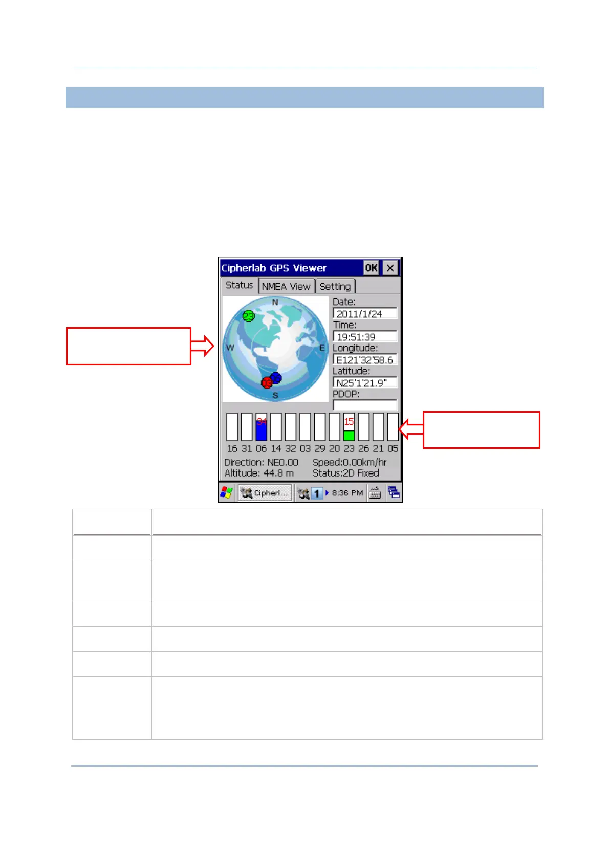 satellites to compute its three dimensional position (X, Y, Z). When the Status