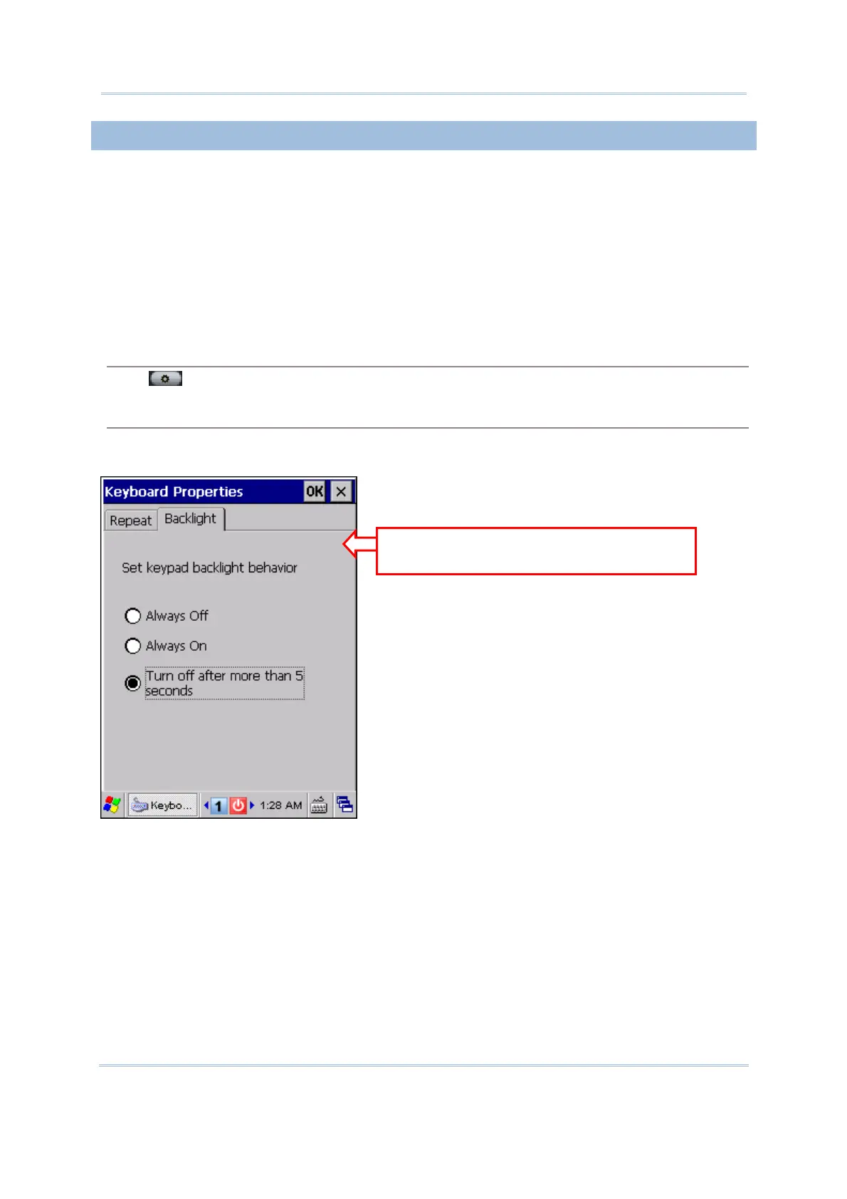 keypad backlight always turned off/on on the Backlight tab.