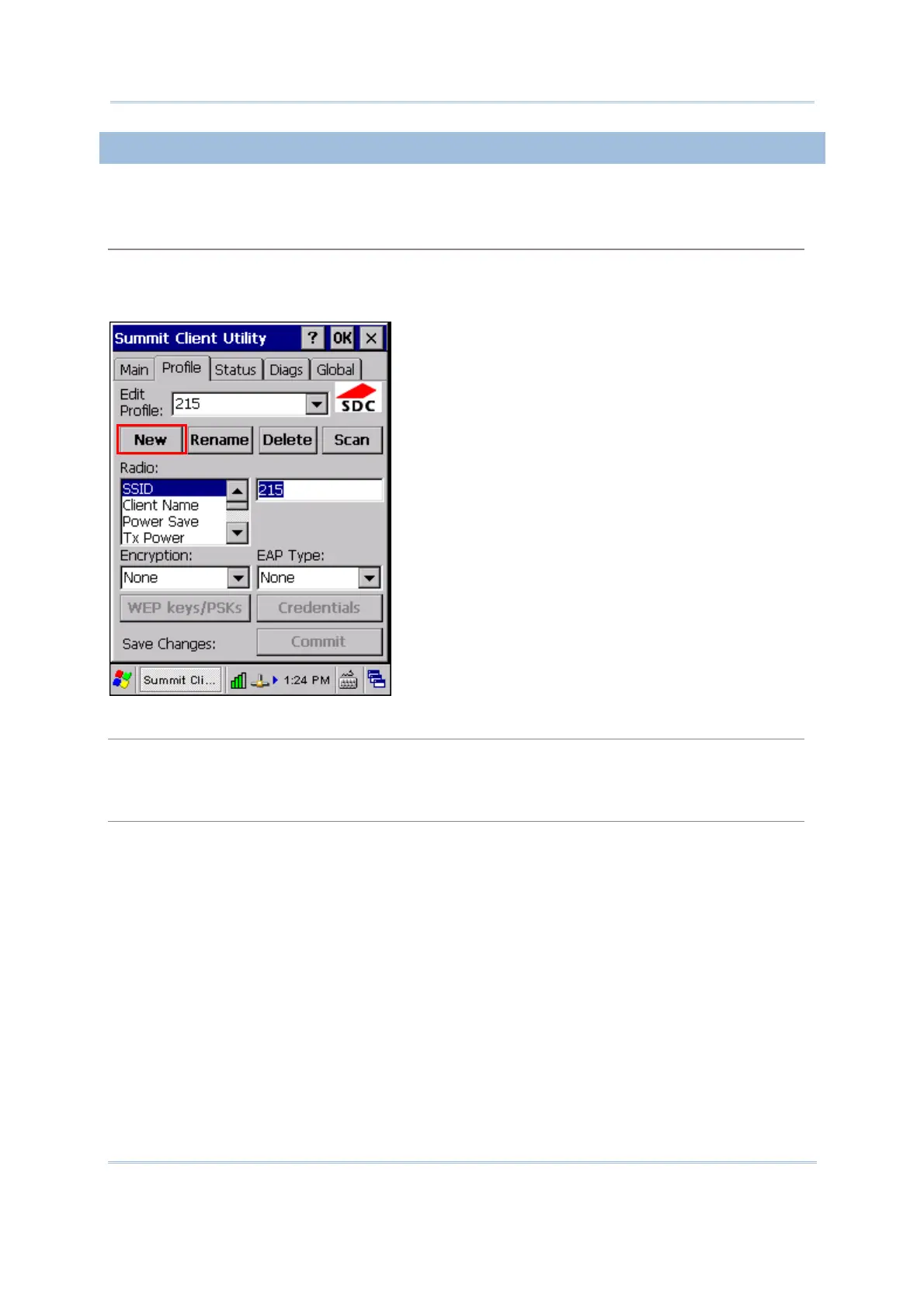 Tap [New] and enter a unique name for this profile. Up to 32 characters are allowed. Configure