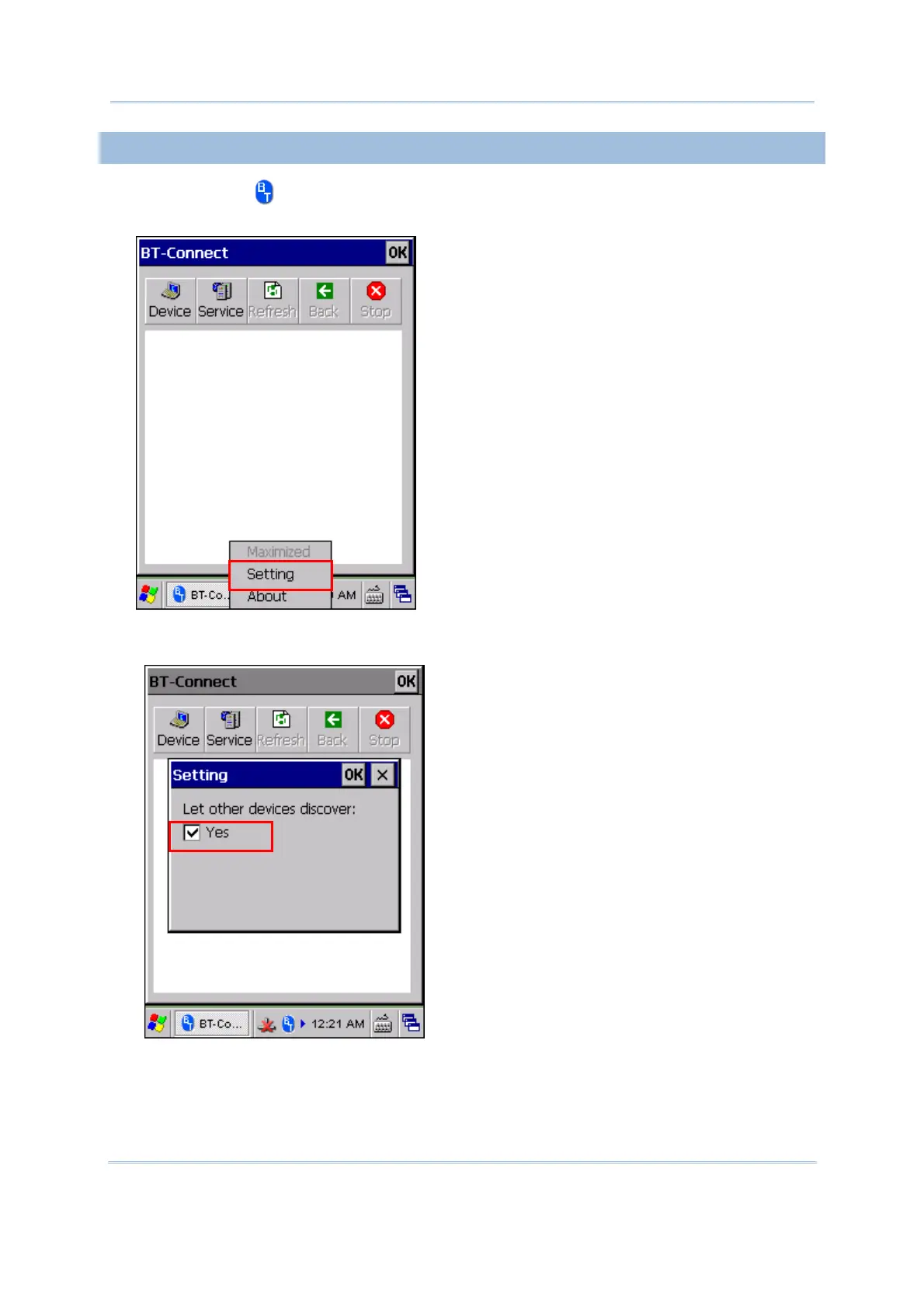 2) Cancel the check box if you want to hide the mobile computer from other Bluetooth