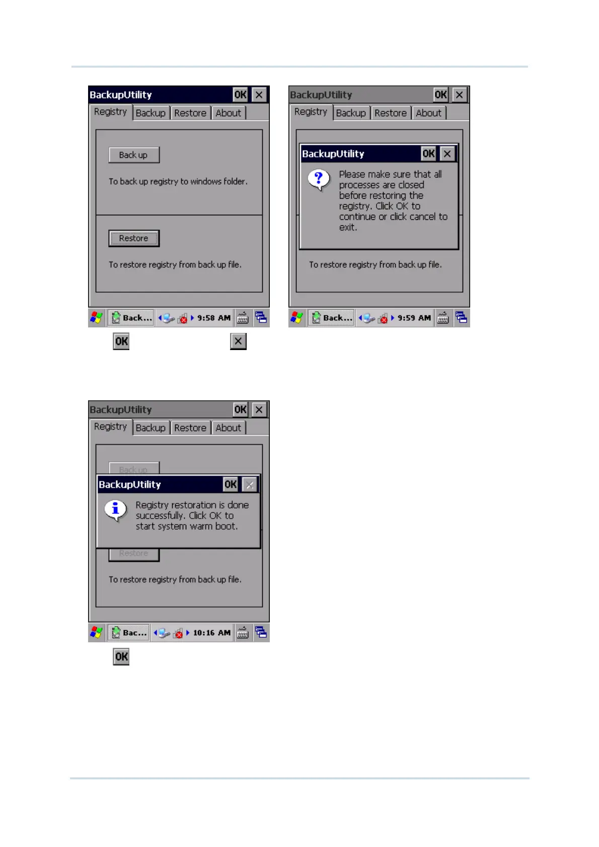 The mobile computer proceeds to restore the registry. When completed, a dialog pops