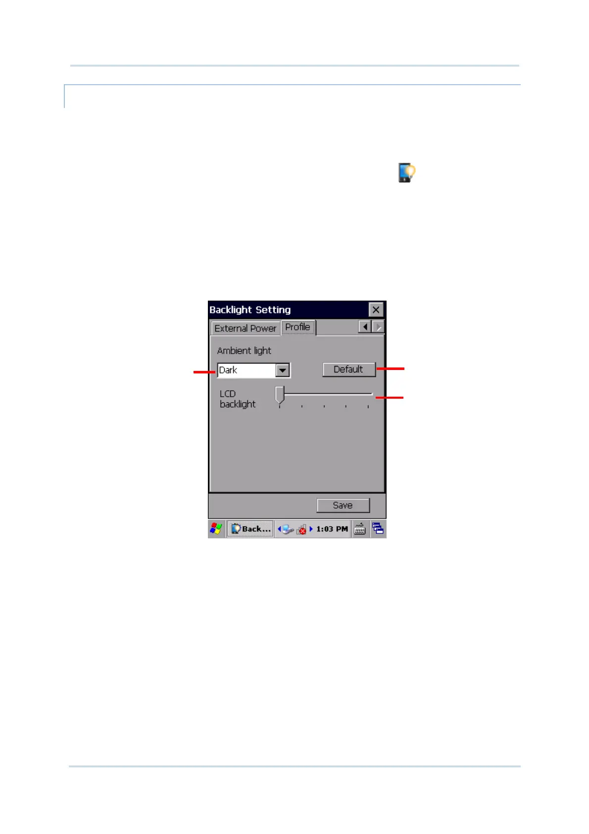 1) Tap Start | Settings | Control Panel | Backlight Setting .
