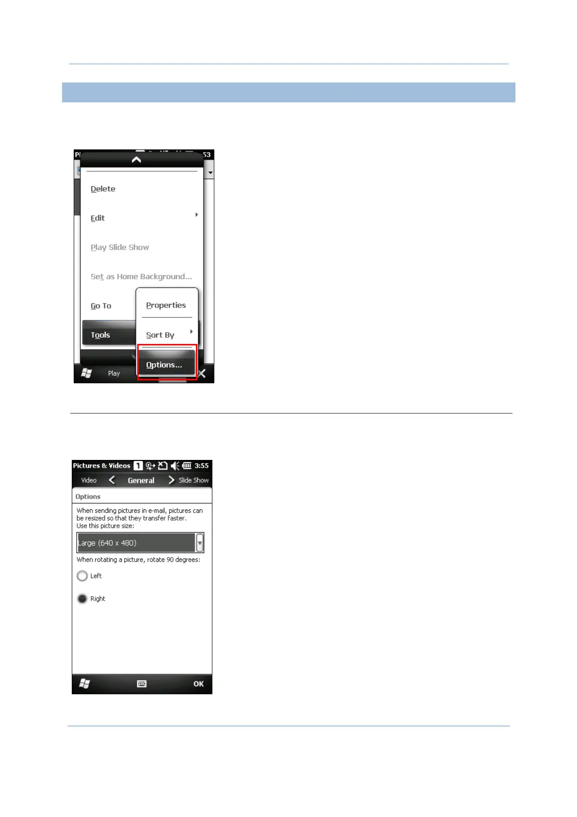 In My Video Configuration screen, tap Menu | Tools | Options; you may have more
