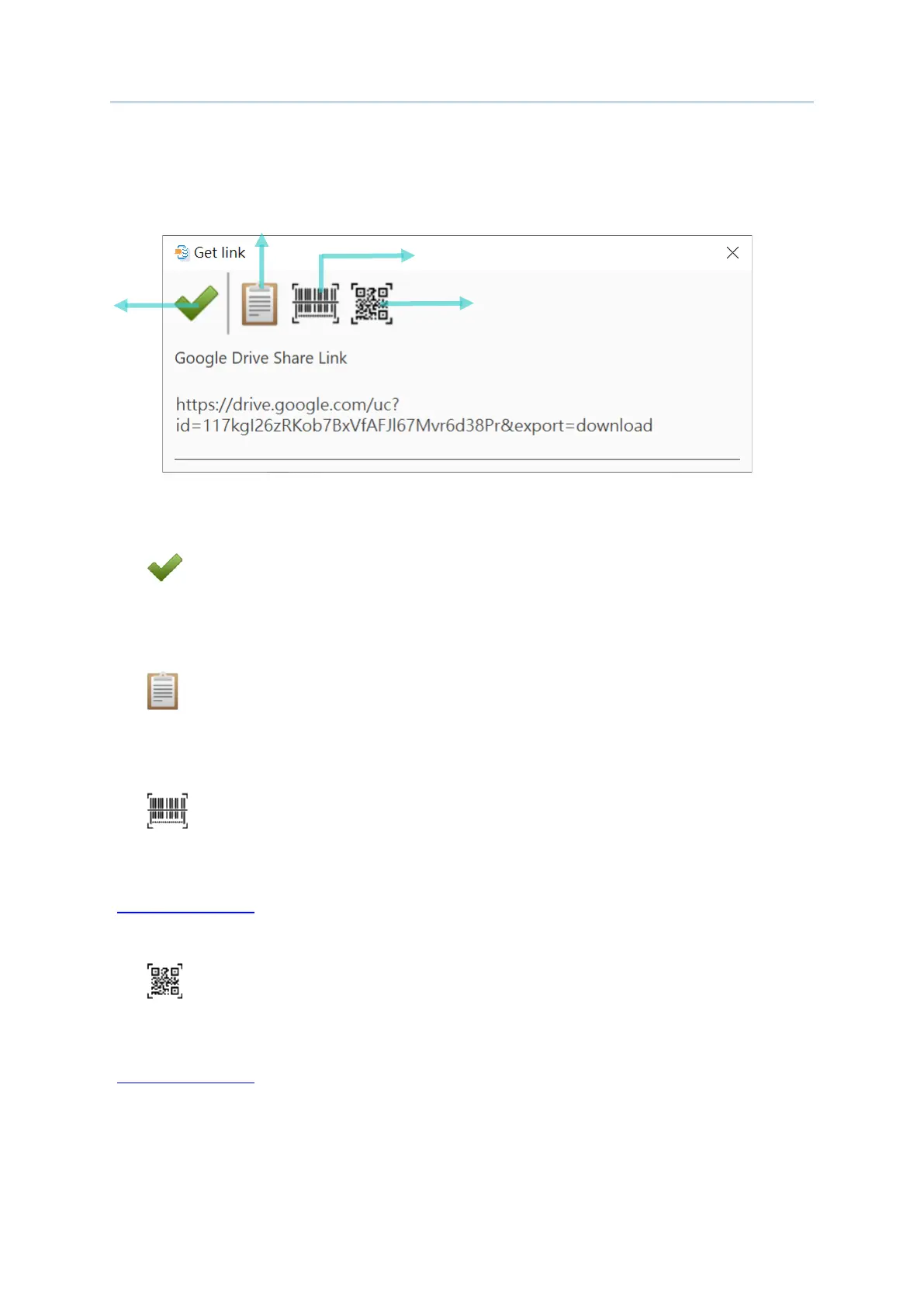 To export and generate this google drive share link as 2D barcode for your mobile