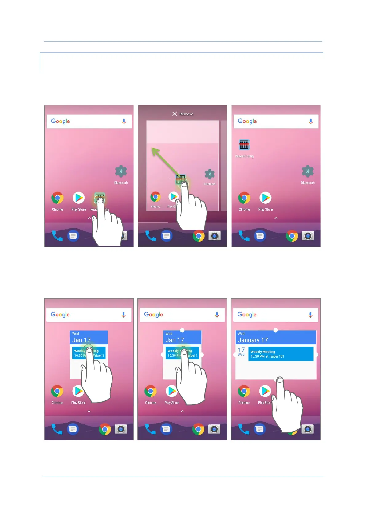 screen, to which you can drag the unwanted shortcut/widget to remove it. Drag the icon to