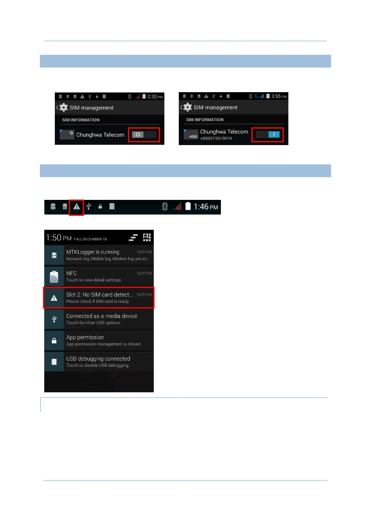 1) On the SIM management screen, tap the phone power switch to turn it on.
