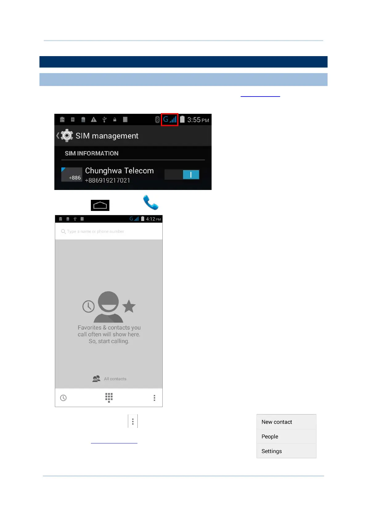 1) When a SIM card is installed on the mobile computer and the Phone Power is on, a signal