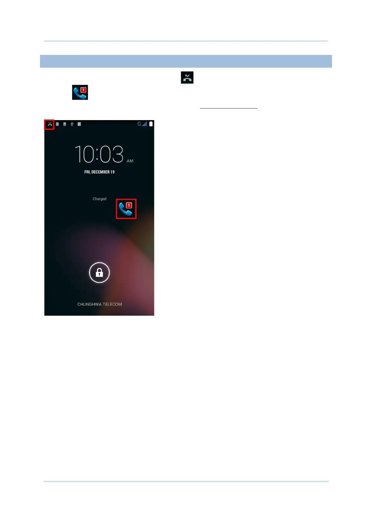 call icon will appear on the lock screen. The LED on the top of the screen will also blink