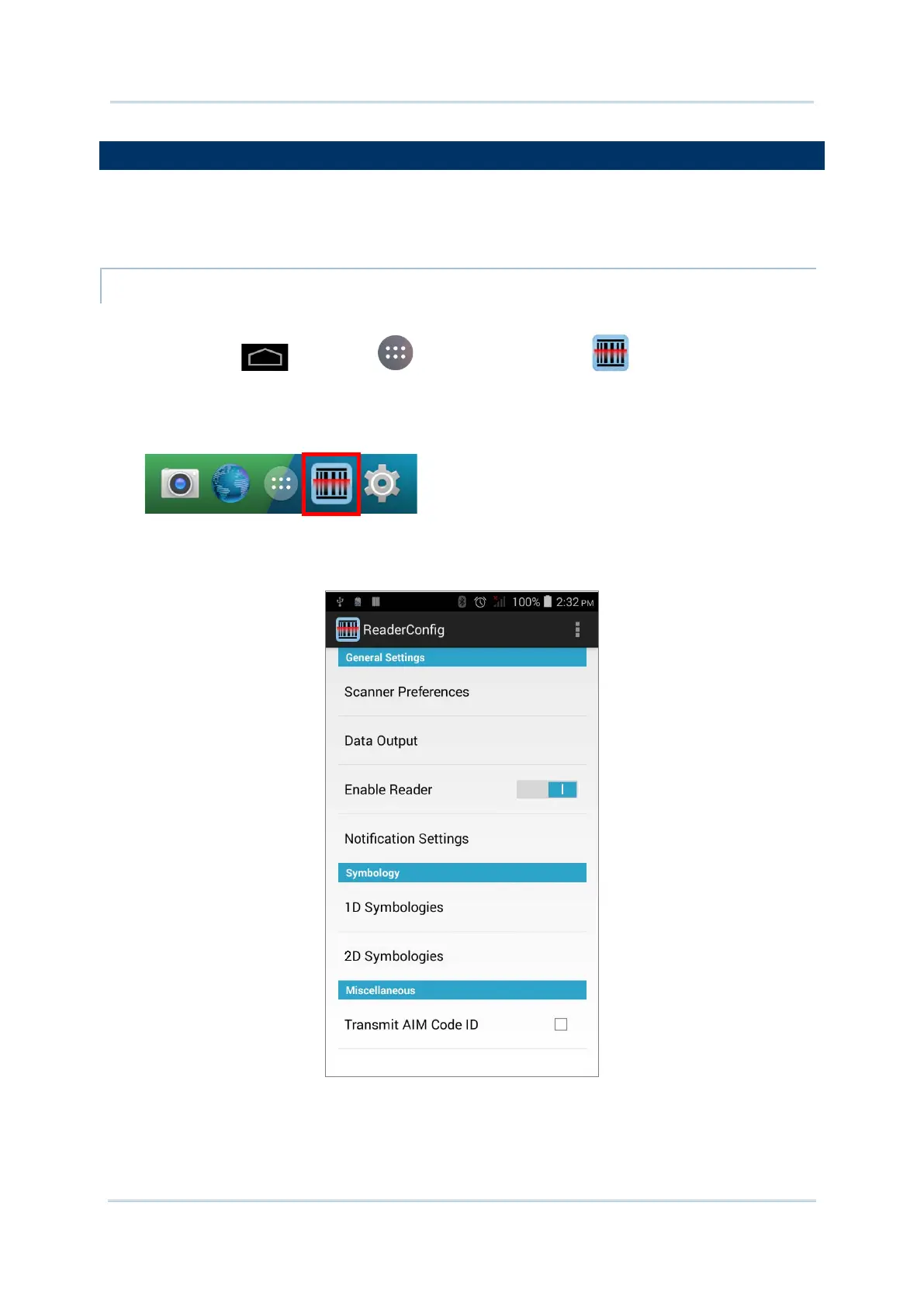 either a (laser) 1D reader or a 2D imager. The mobile computer is installed with a CipherLab