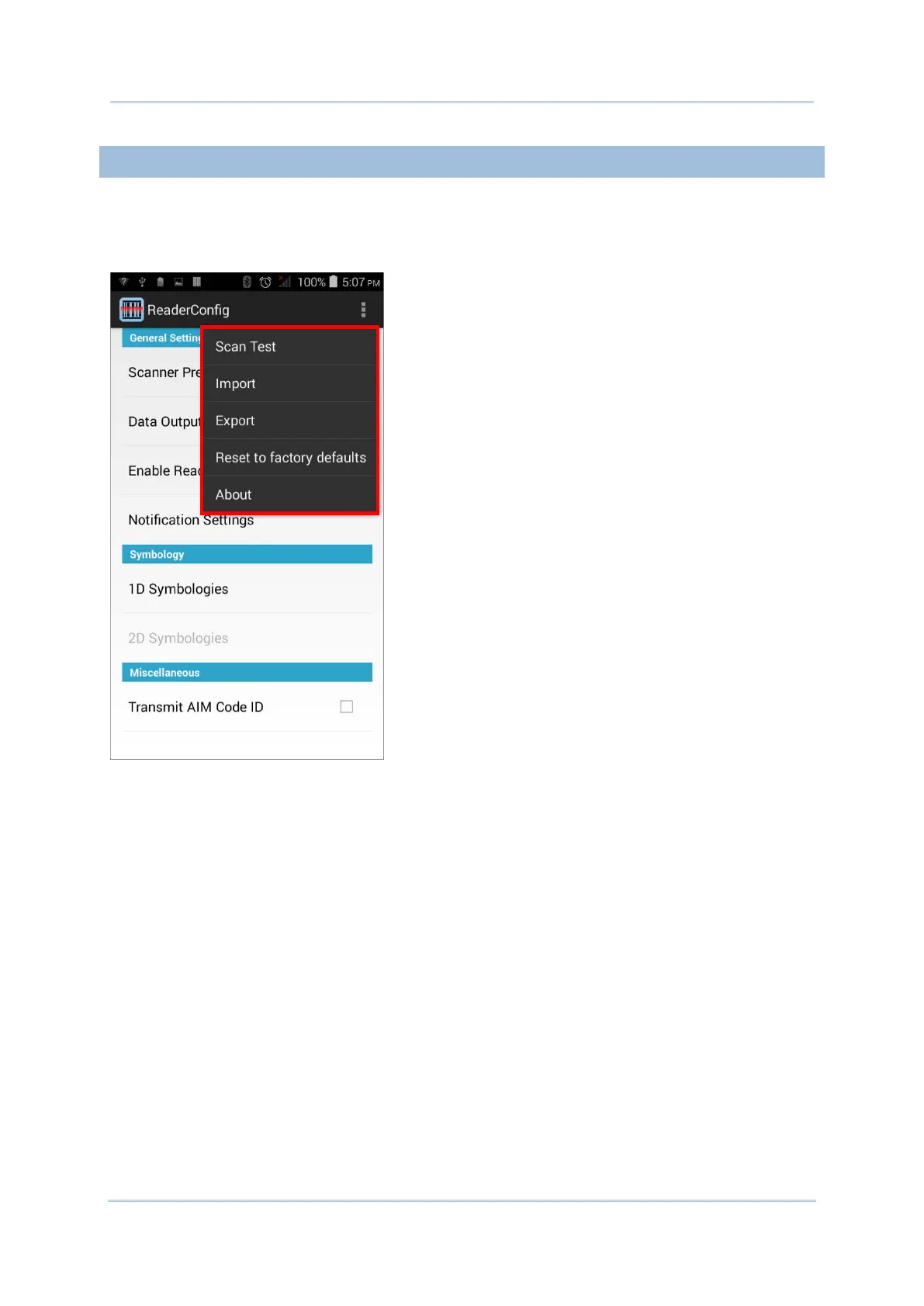 settings page. This menu allows you to test scan barcodes, import/export all settings in a