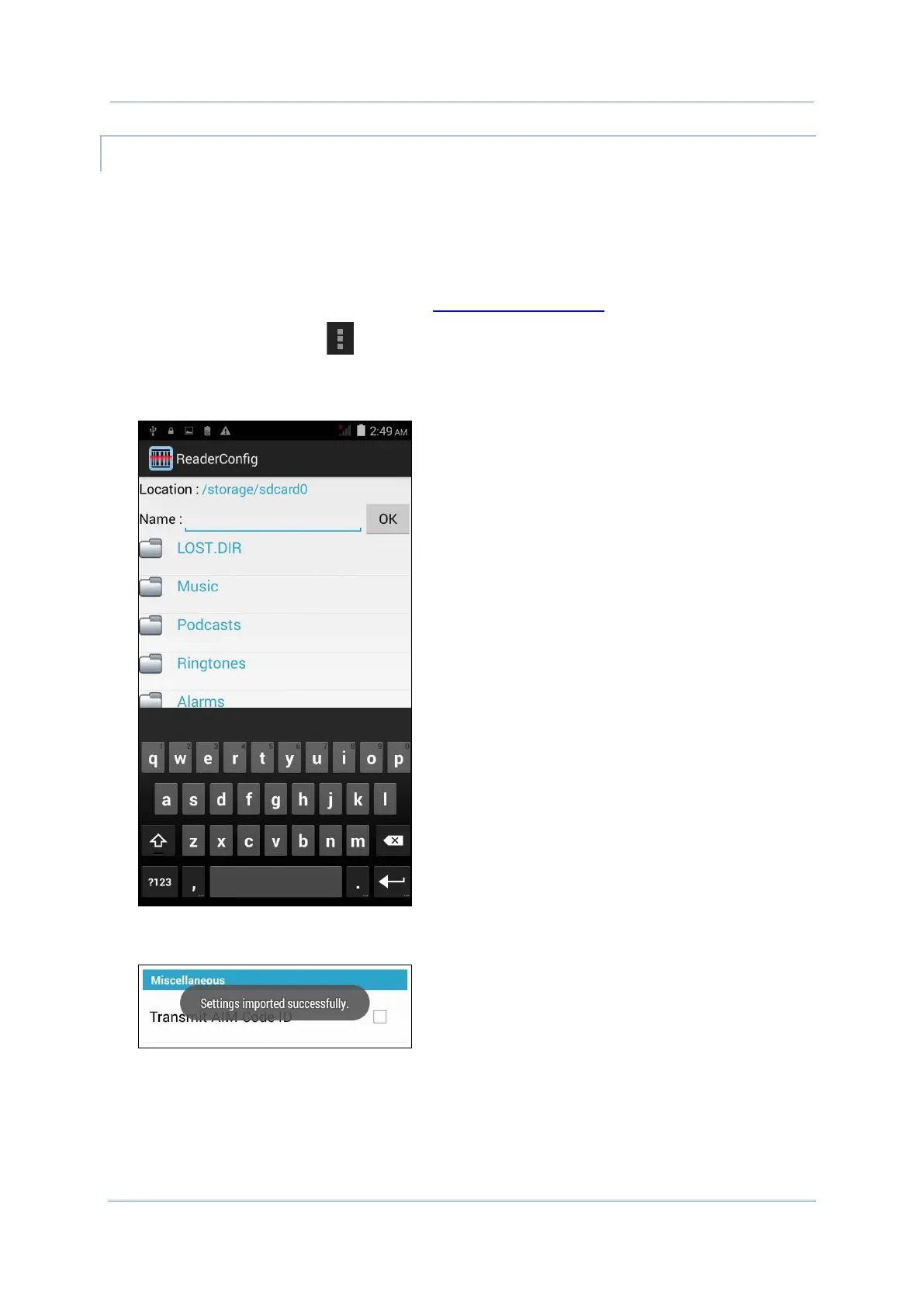 Previously exported symbology and scanner settings can be imported again on the mobile
