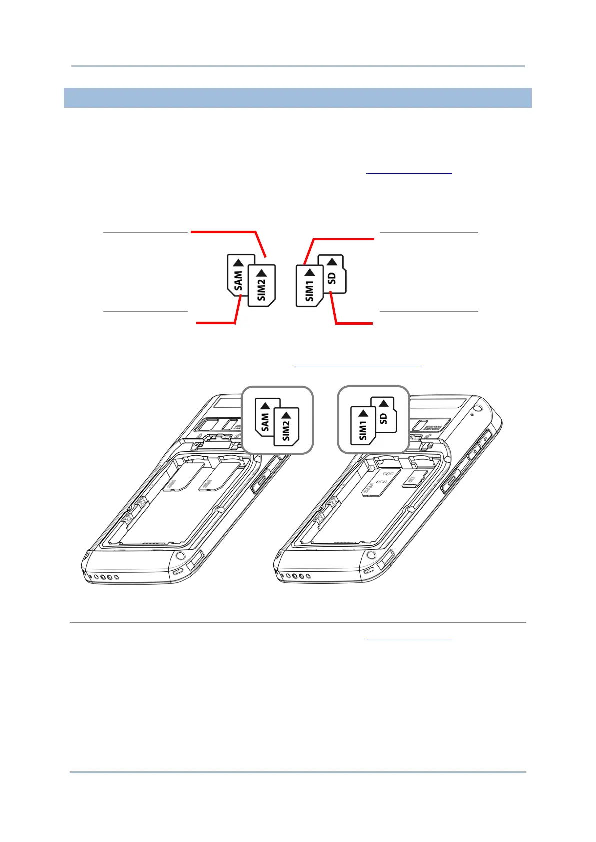 The RS30 Mobile Computer is equipped with two SIM card slots, one SAM card slot and one