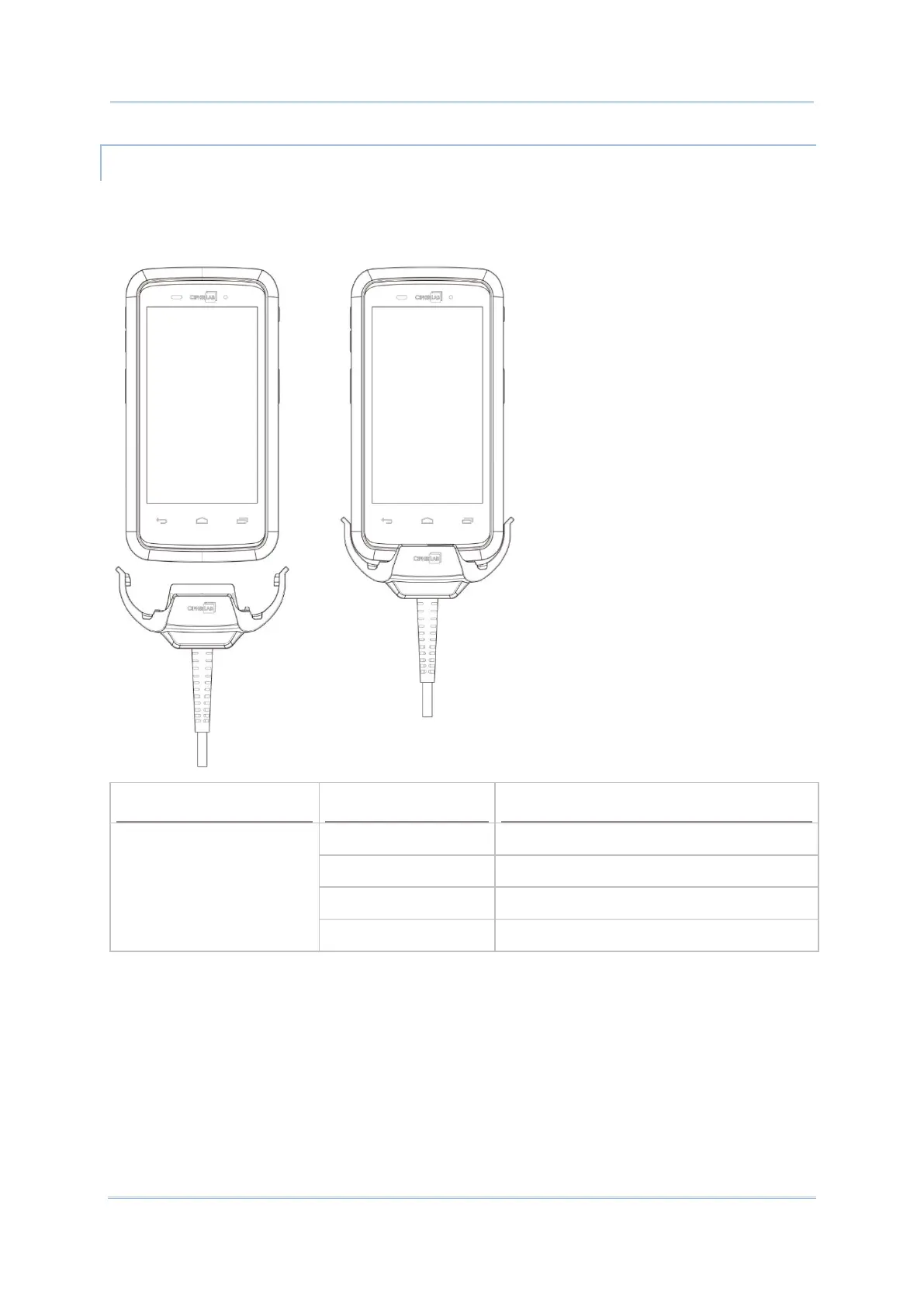 1) Fasten the Snap-on USB Charging Cable to the lower end of the mobile computer.
