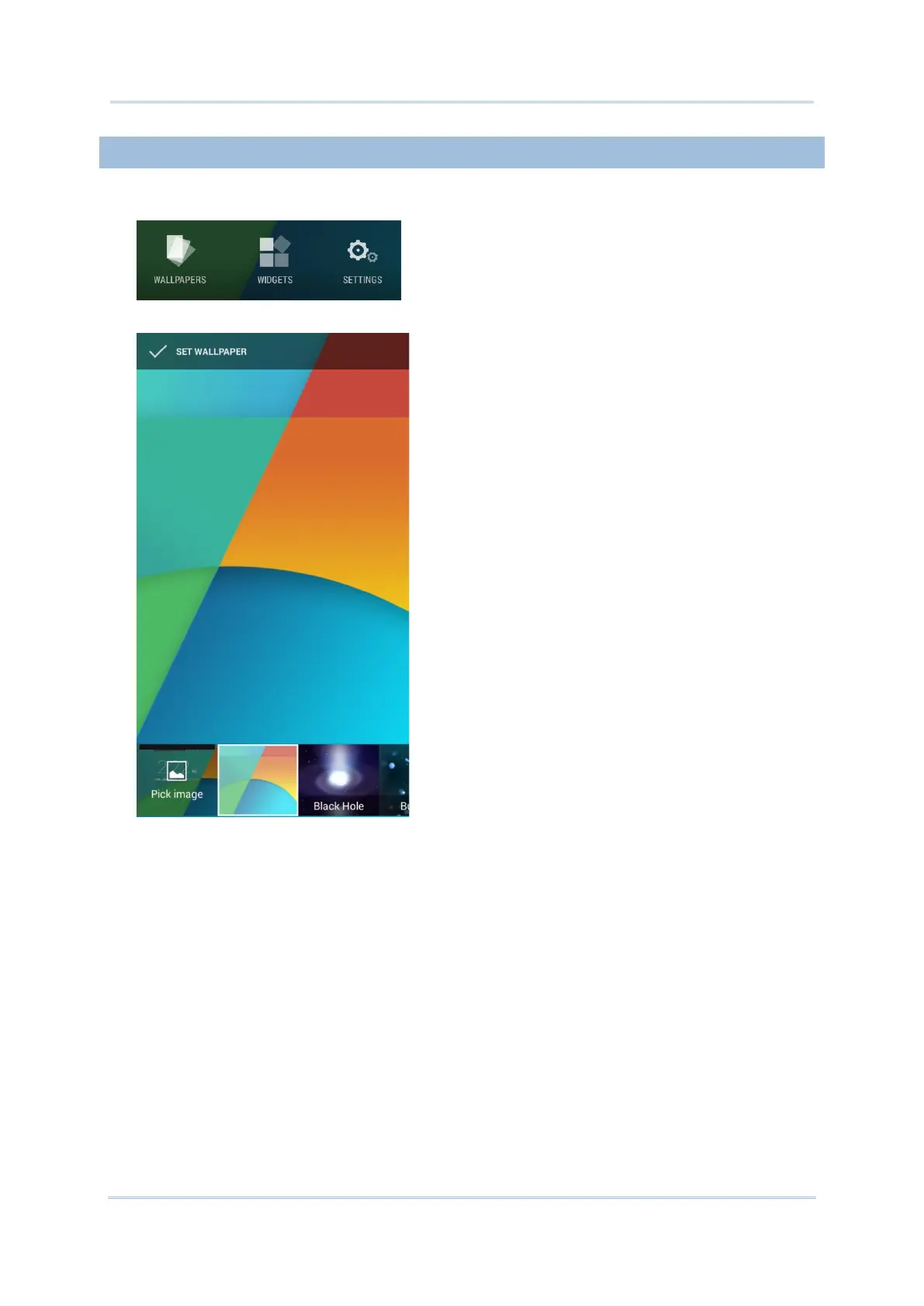 3) A wallpaper selection screen opens. Scroll through the wallpapers to select a wallpaper