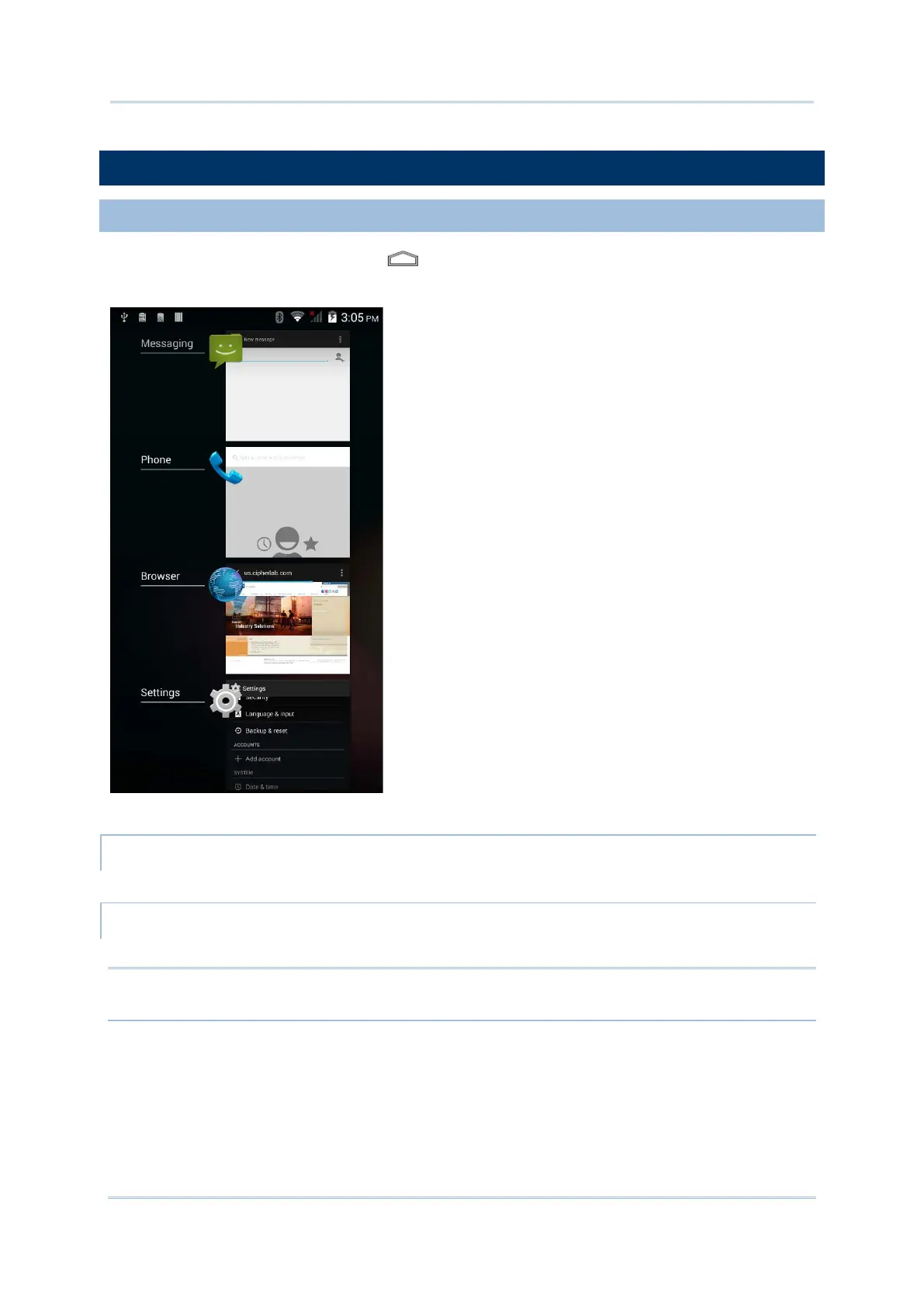 Tap and hold the Home button . The screen will show a list of recently used