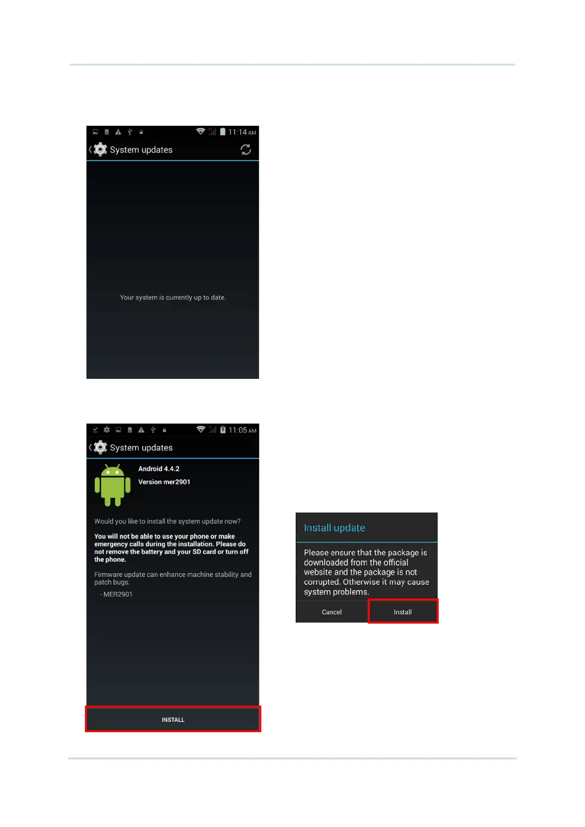 4) When the system update file has been downloaded, tap INSTALL to open an “Install