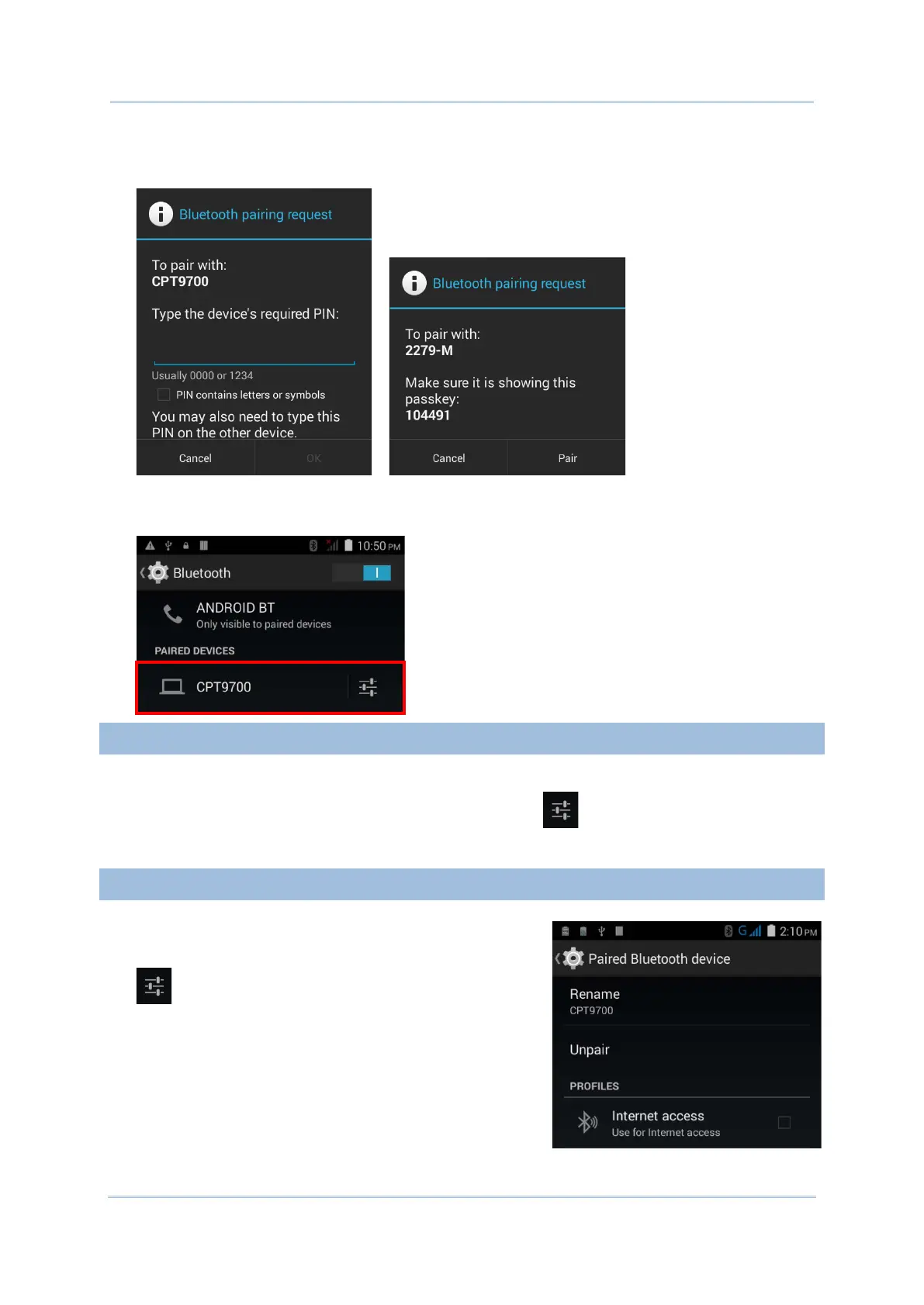 2) On the Paired Bluetooth device screen, tap Unpair.