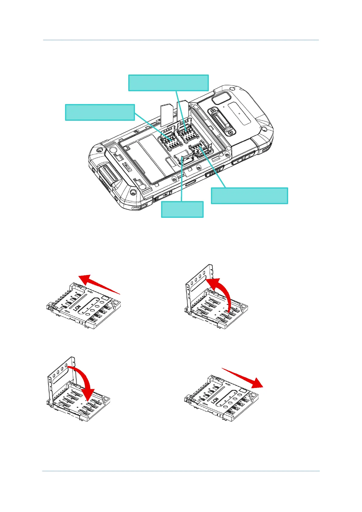 3) After the chamber is revealed, insert SIM cards, the SAM card and the microSD card
