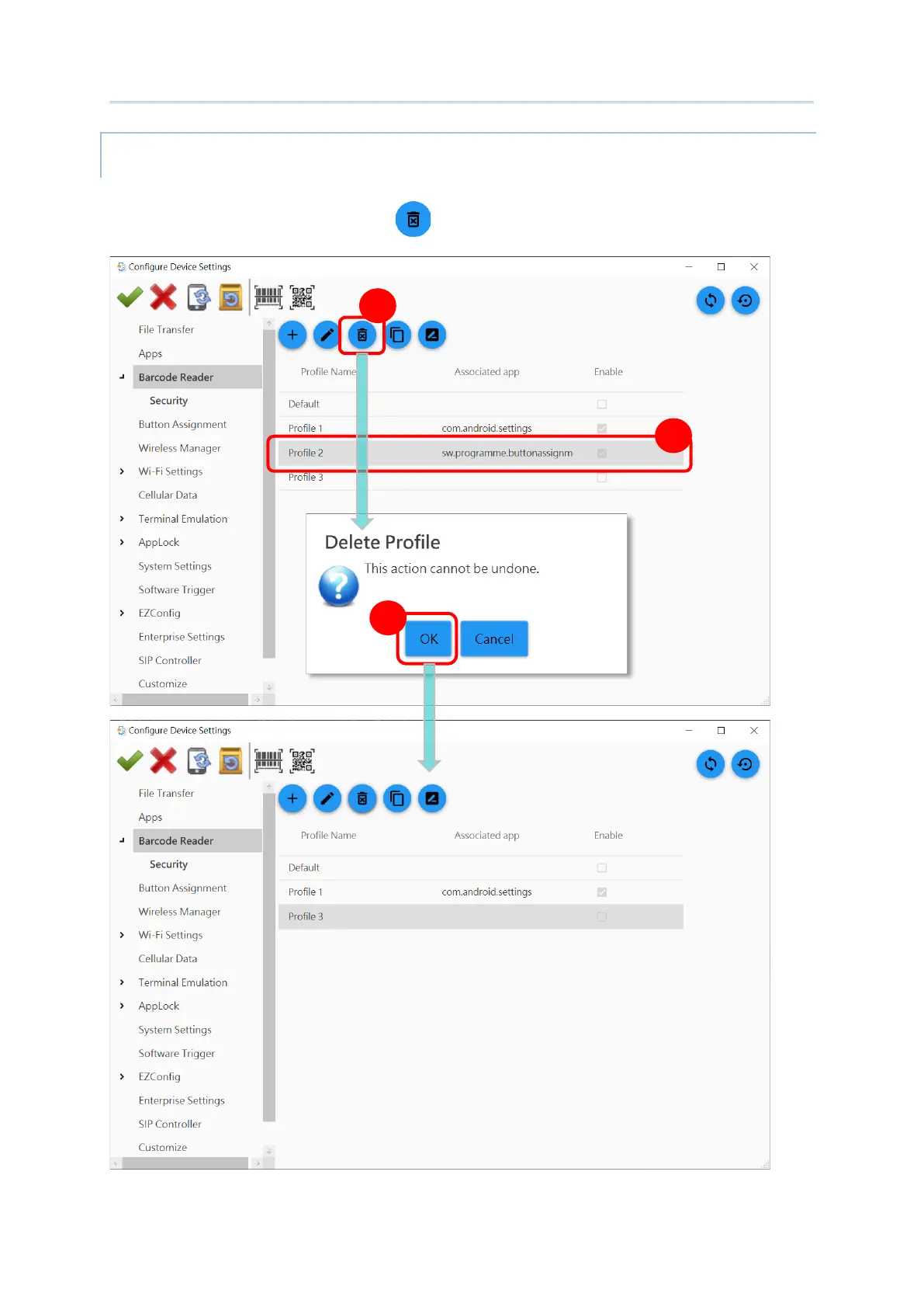 To delete an existing profile, please select the profile to be delete, click on the profile