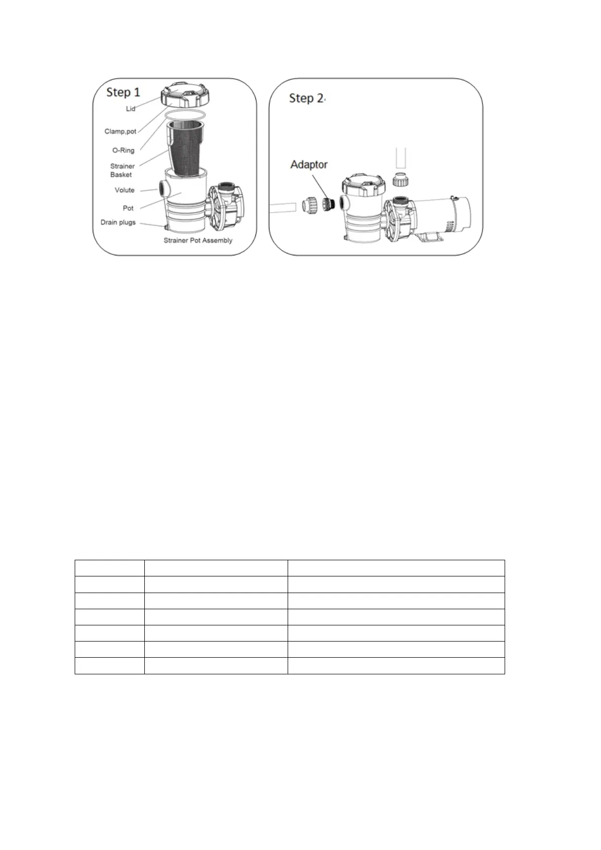 1. The correct attachments of the mechanical parts and of the support screws of the pump.