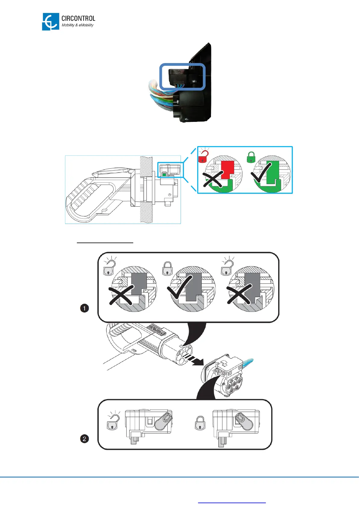 This system locks the connector into the plug. Type 2, IEC 62196-2.