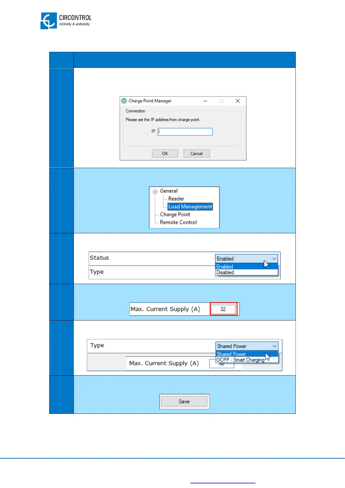 For further information please, refer to Charge Point Manager Instruction Manual.