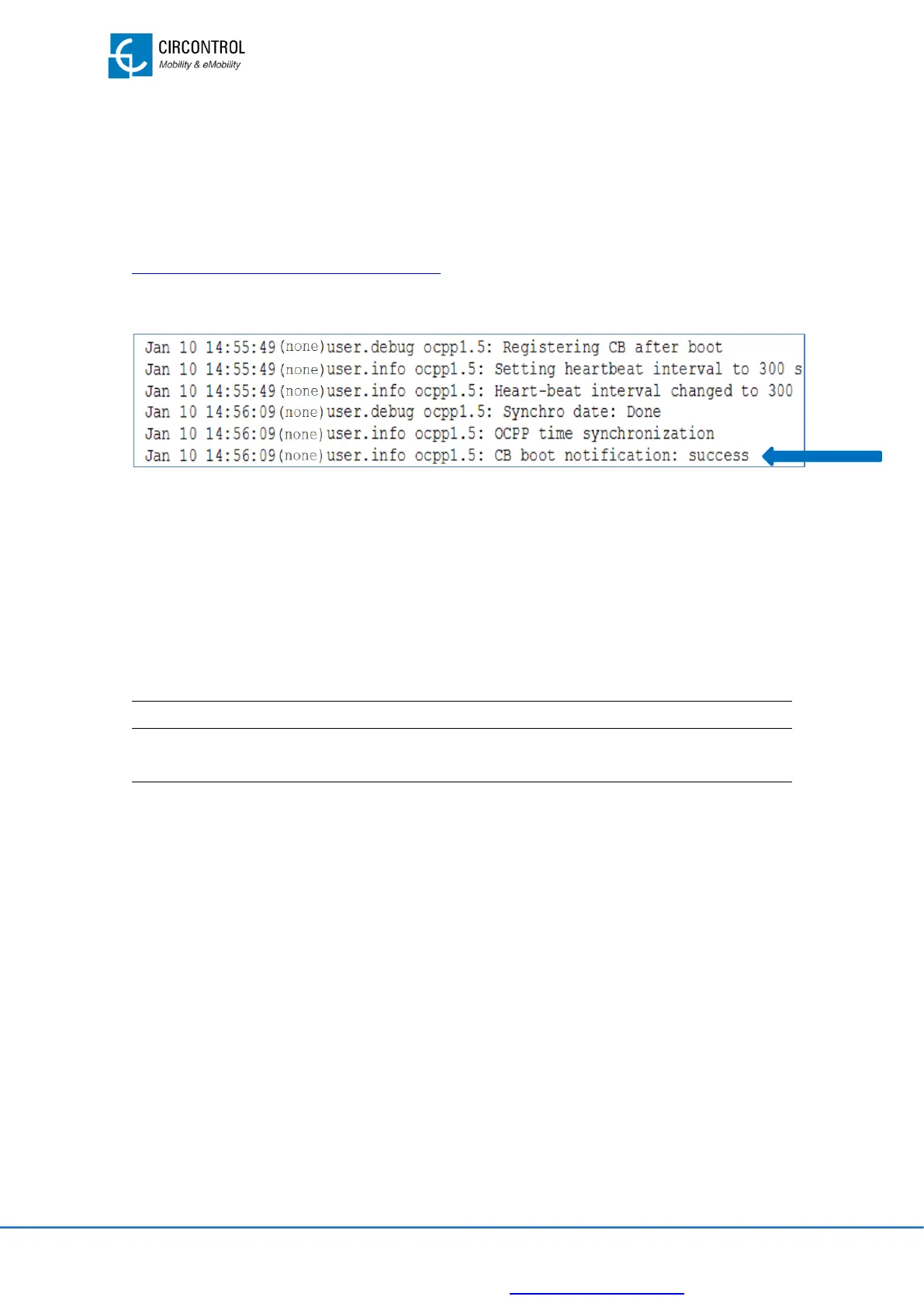 If ‘CB boot notification: success’ appears when the Charge Point is properly