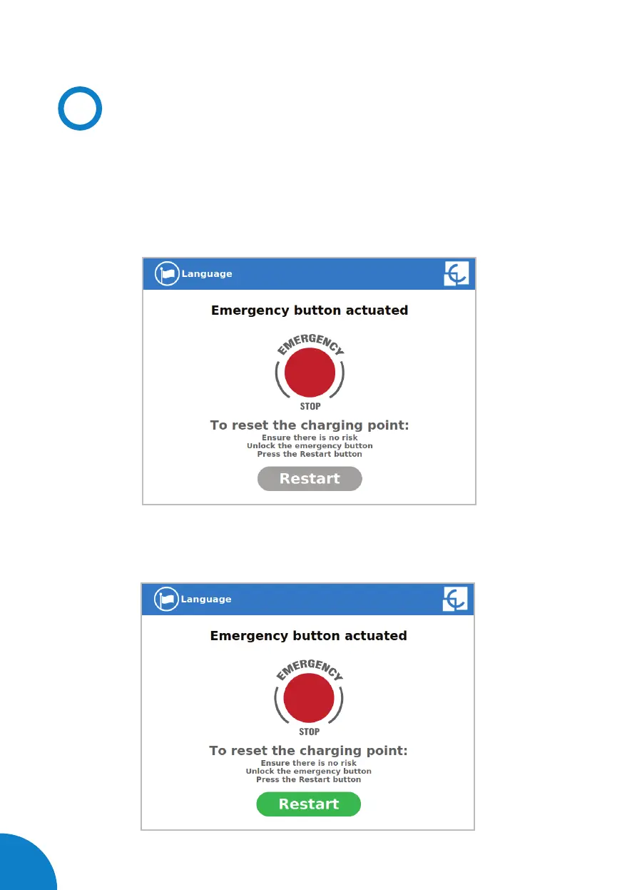 for pressing. Once emergency button has been unlocked, the ‘Restart’ touch button