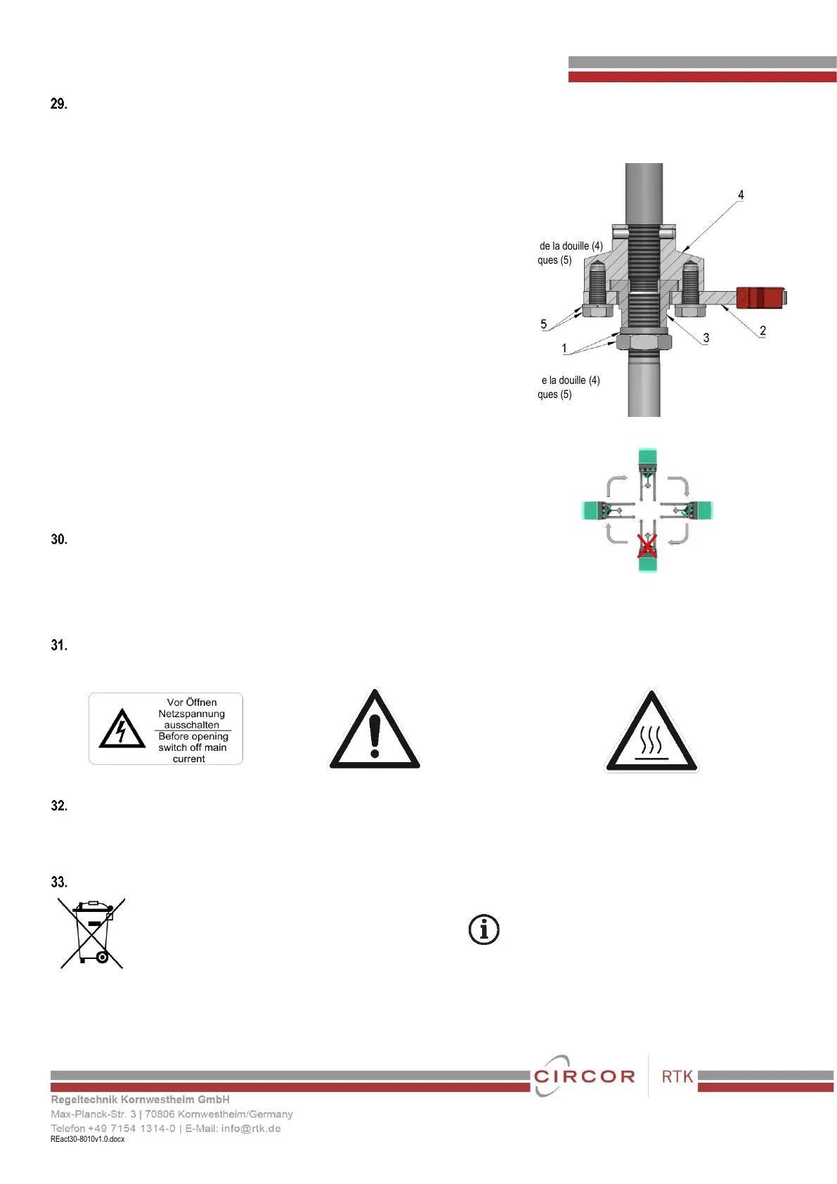 • Fixez l’actuateur/l'axe de L’actuateur à la vanne et ajustez la position pour qu'il repose à plat sur le goujon de la douille (4)