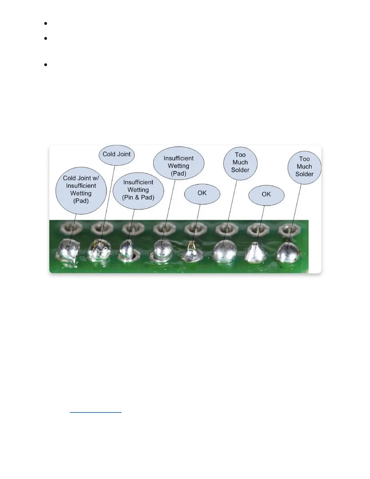 Don’t leave any residual solder on the board! The solder should only be on