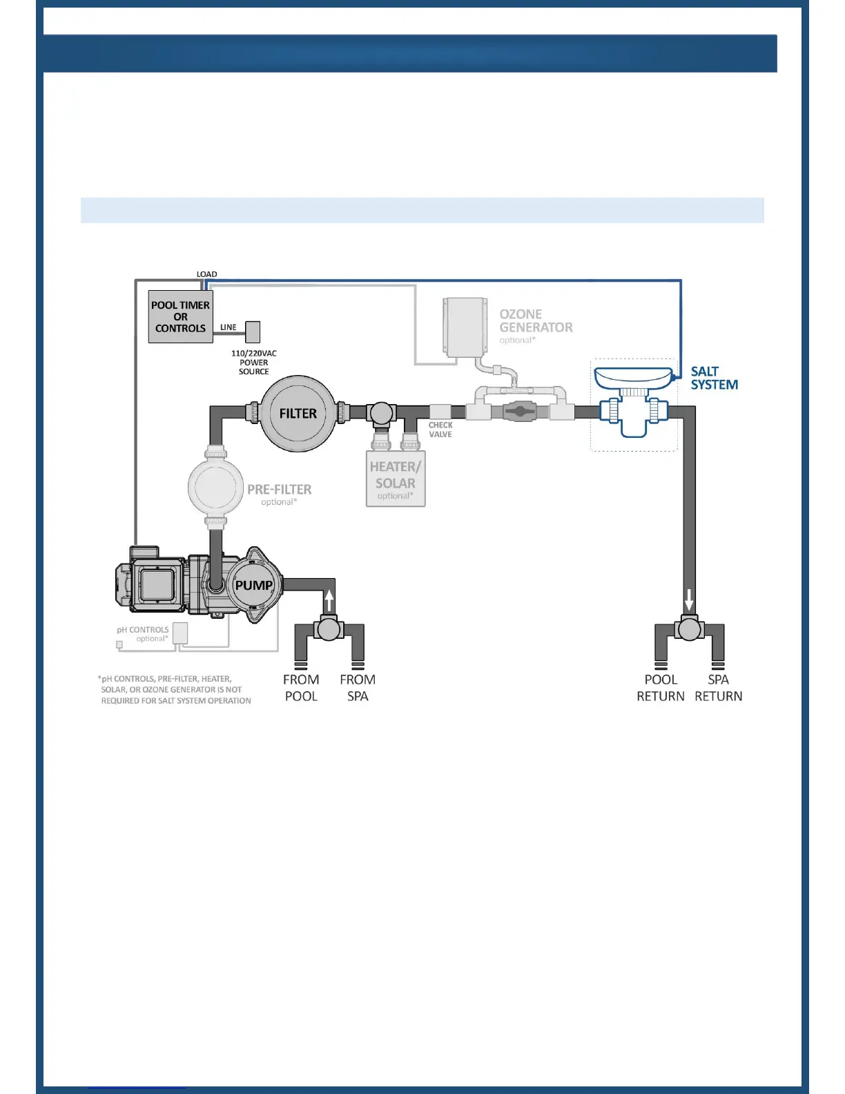 The system must be installed on the return line as the last pieces of equipment the water passes through before