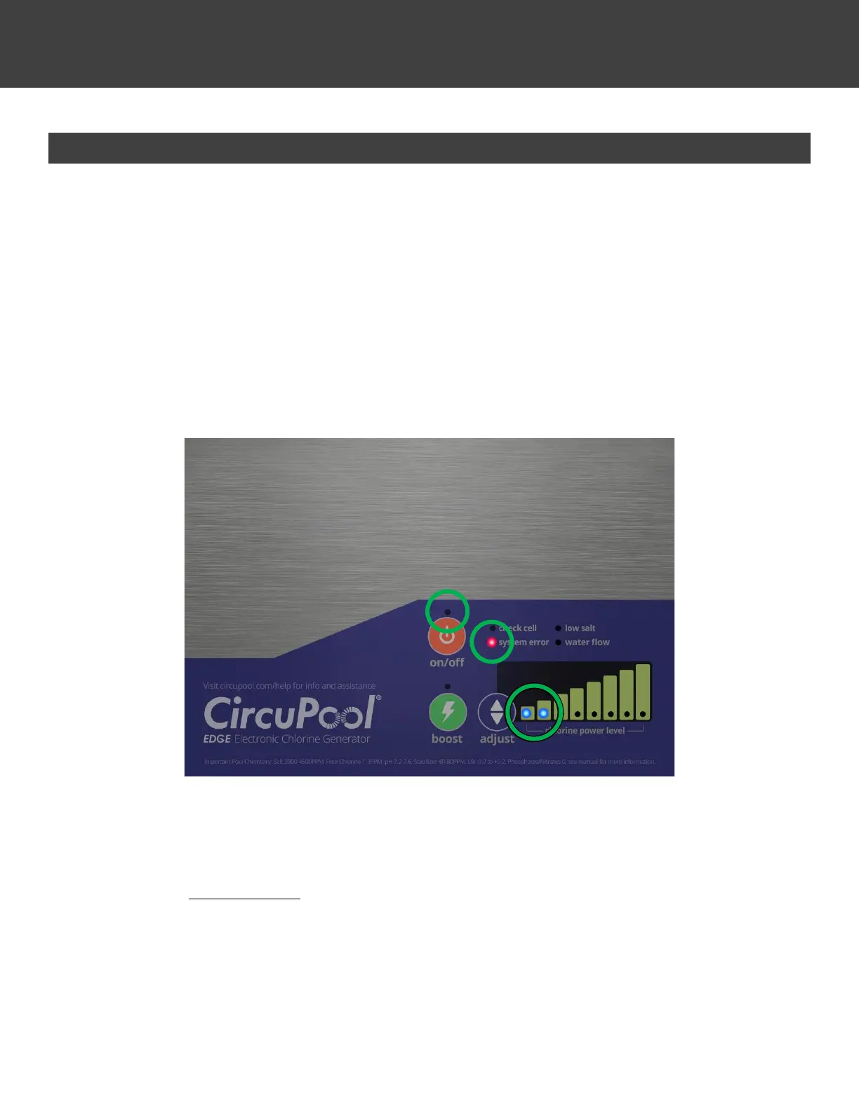 lights that are lit on the “chlorine power level” graph (anywhere from 1 to 7 will be lit).