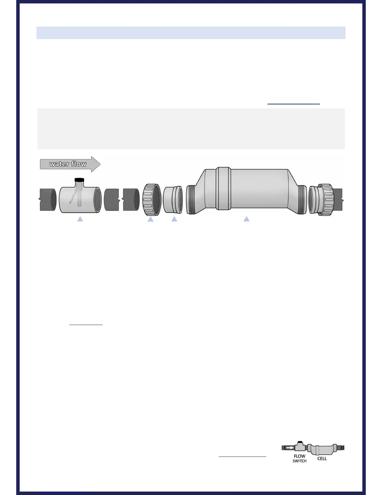 - IMPORTANT: When positioning the Flow Switch, there must be at least 6 to 12” (30cm) of straight pipe before