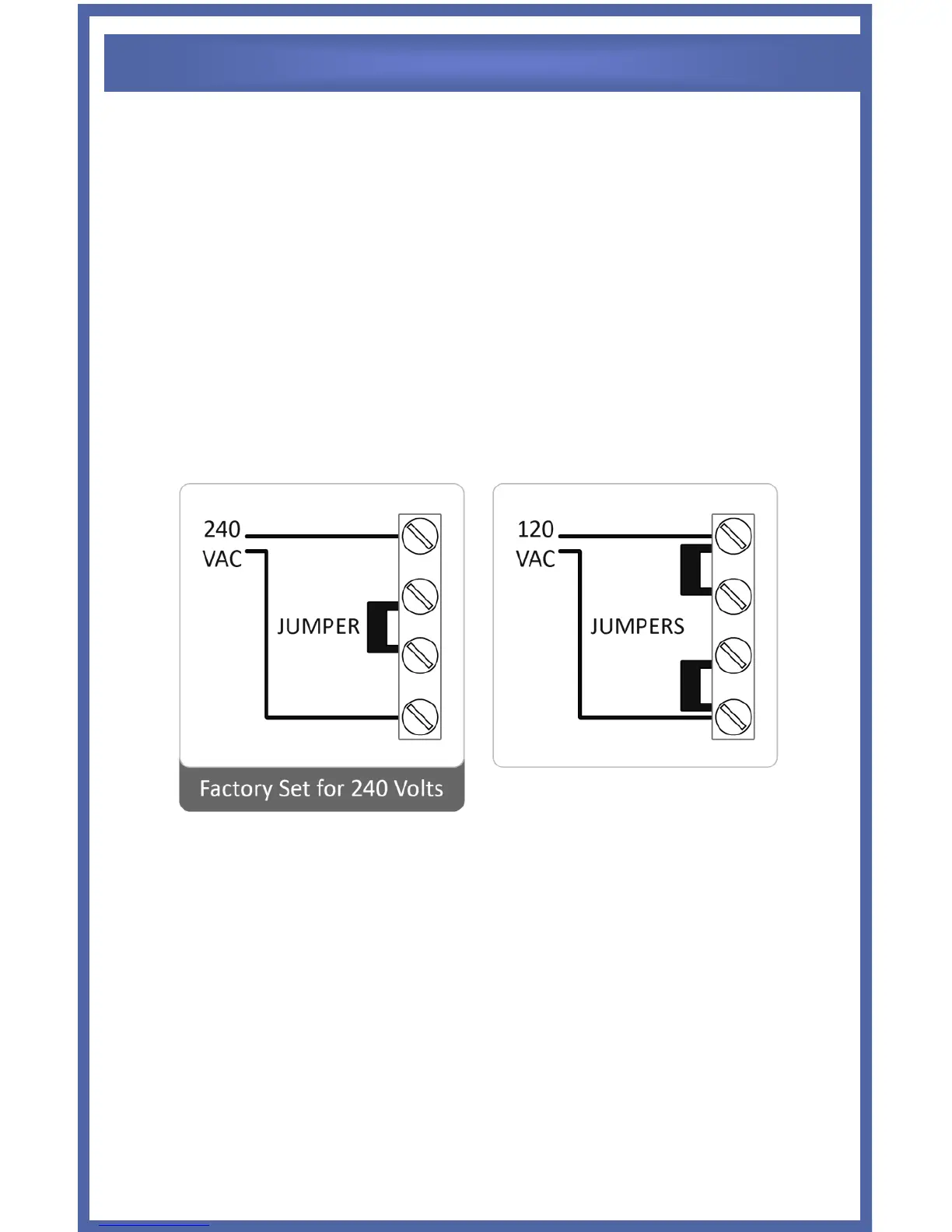 The Universal Series is shipped from the factory with a 240 VAC