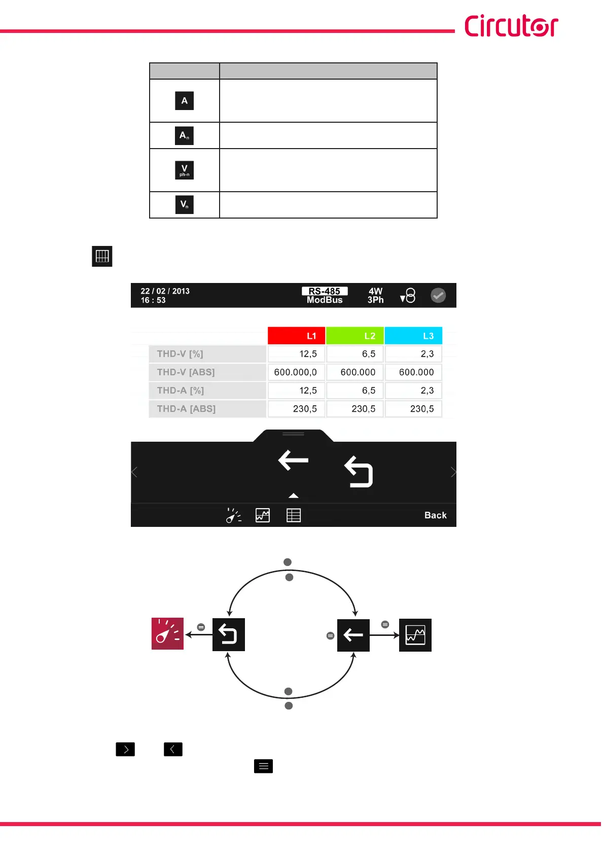 Figure 160: Harmonics screen, table display�