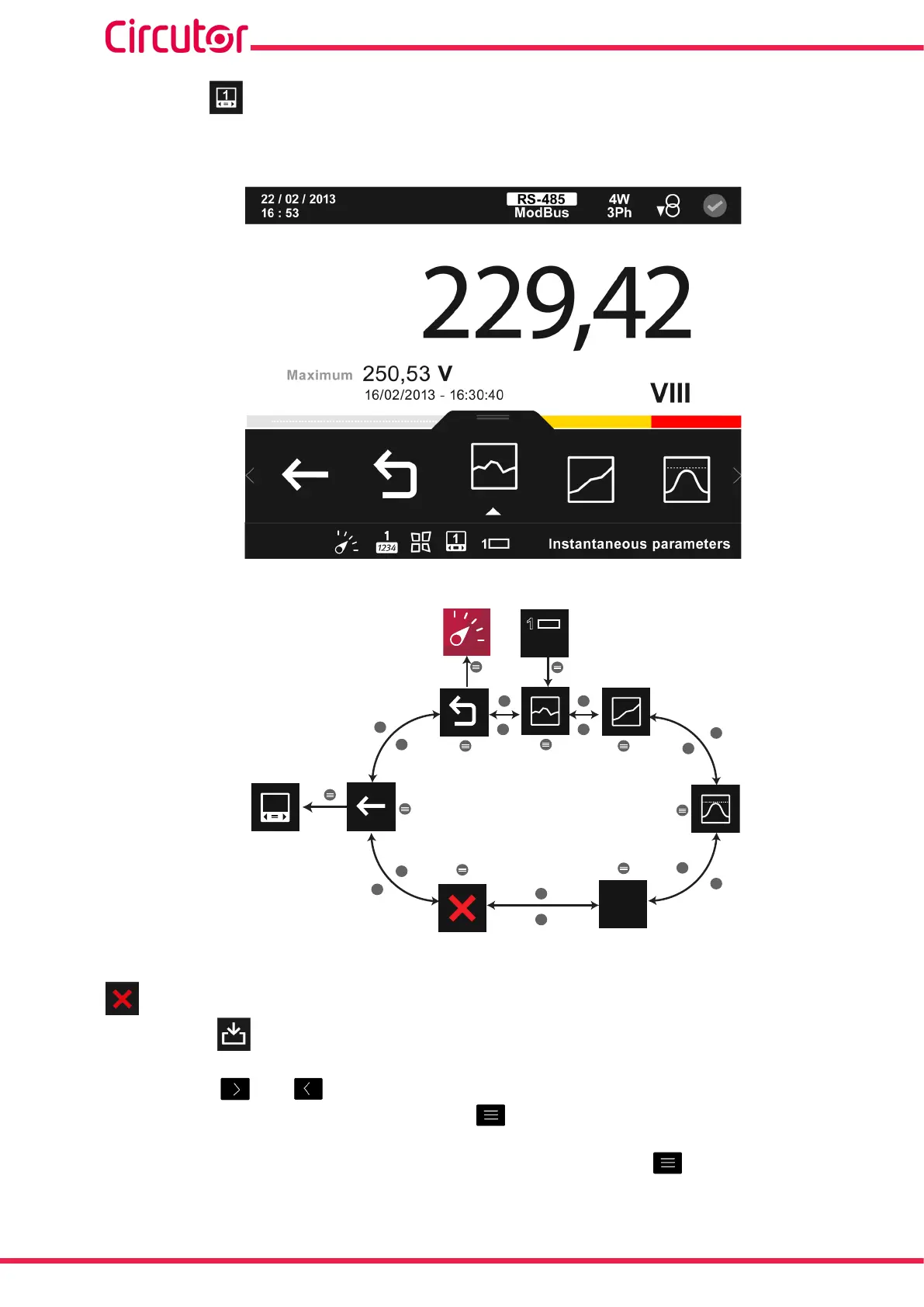 The menu in the lower area disappears after 3 seconds. Press the key to display the lower