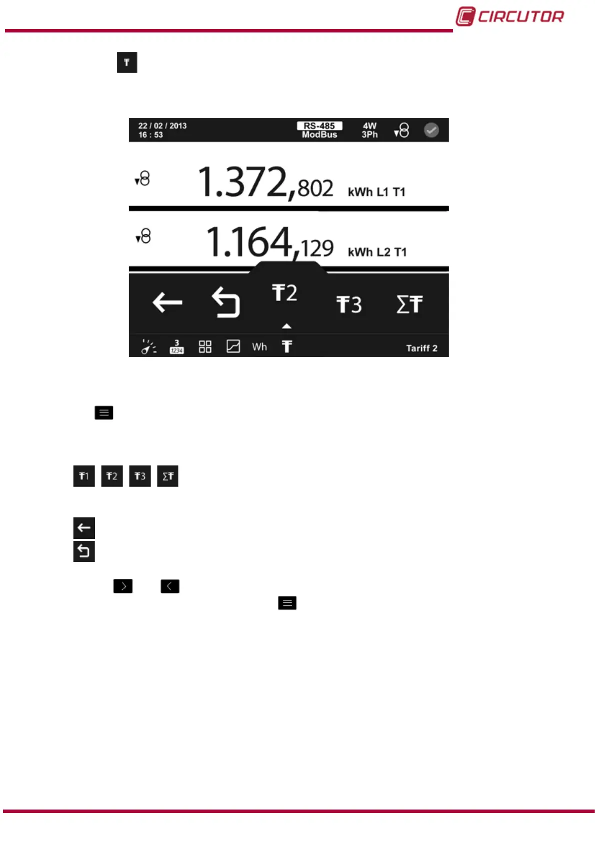 , , , Select the tariff to display: Tariff 1, Tariff 2, Tariff 3 or the total value