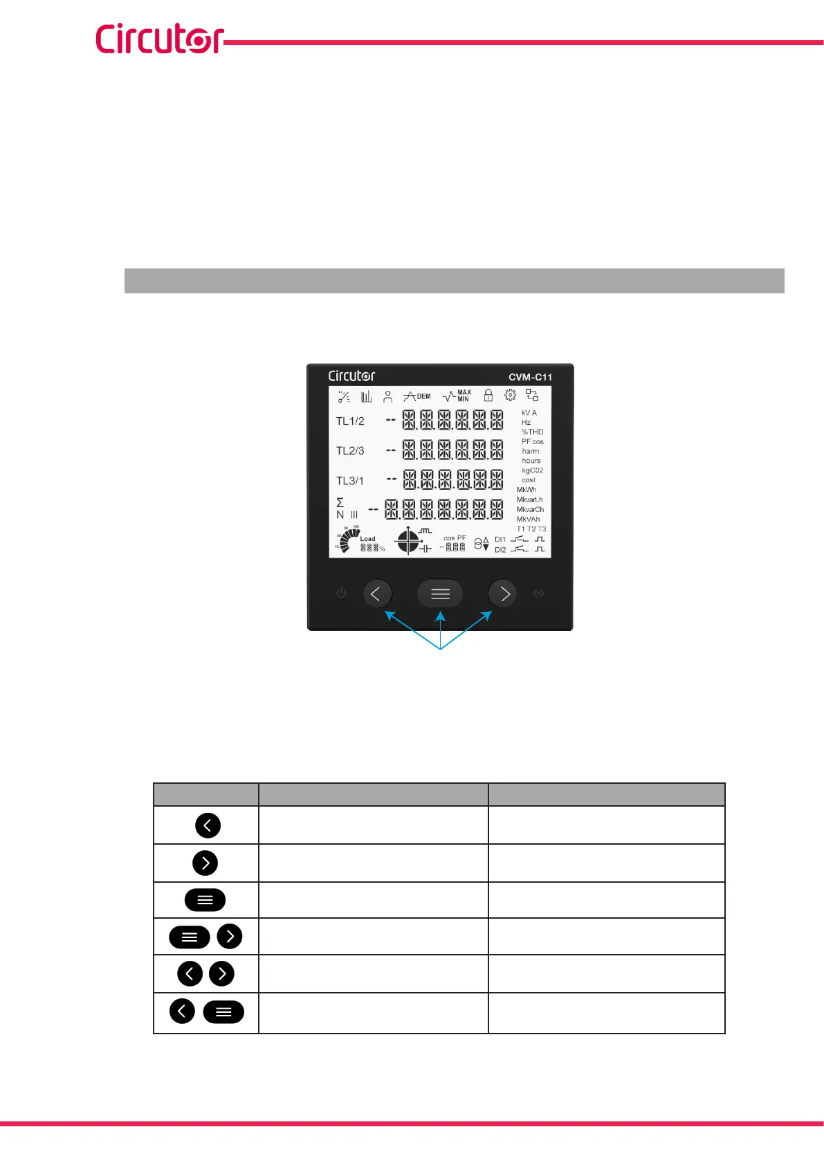 The CVM-C11 has 3 keys that allow you to browse between the various screens and program the device.