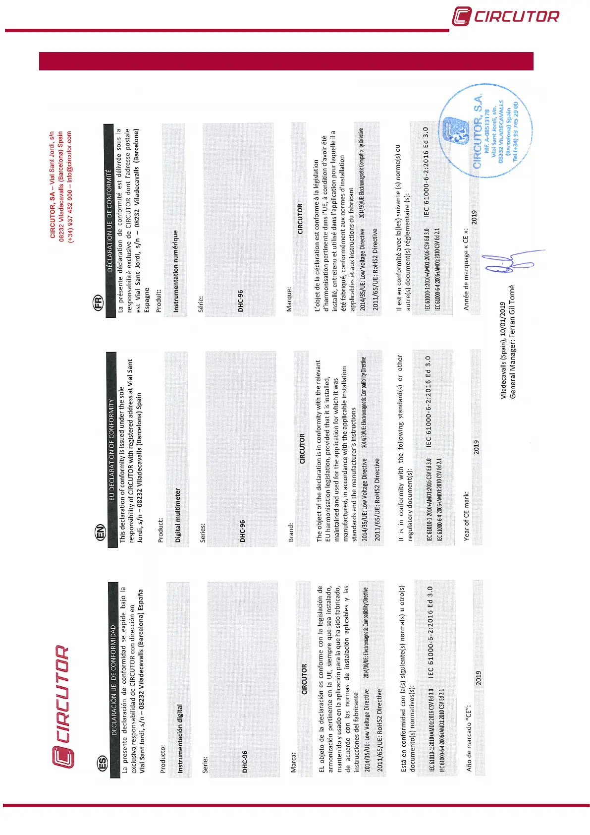 Circutor DHC-96 Aac - 10�- Ce Certificate