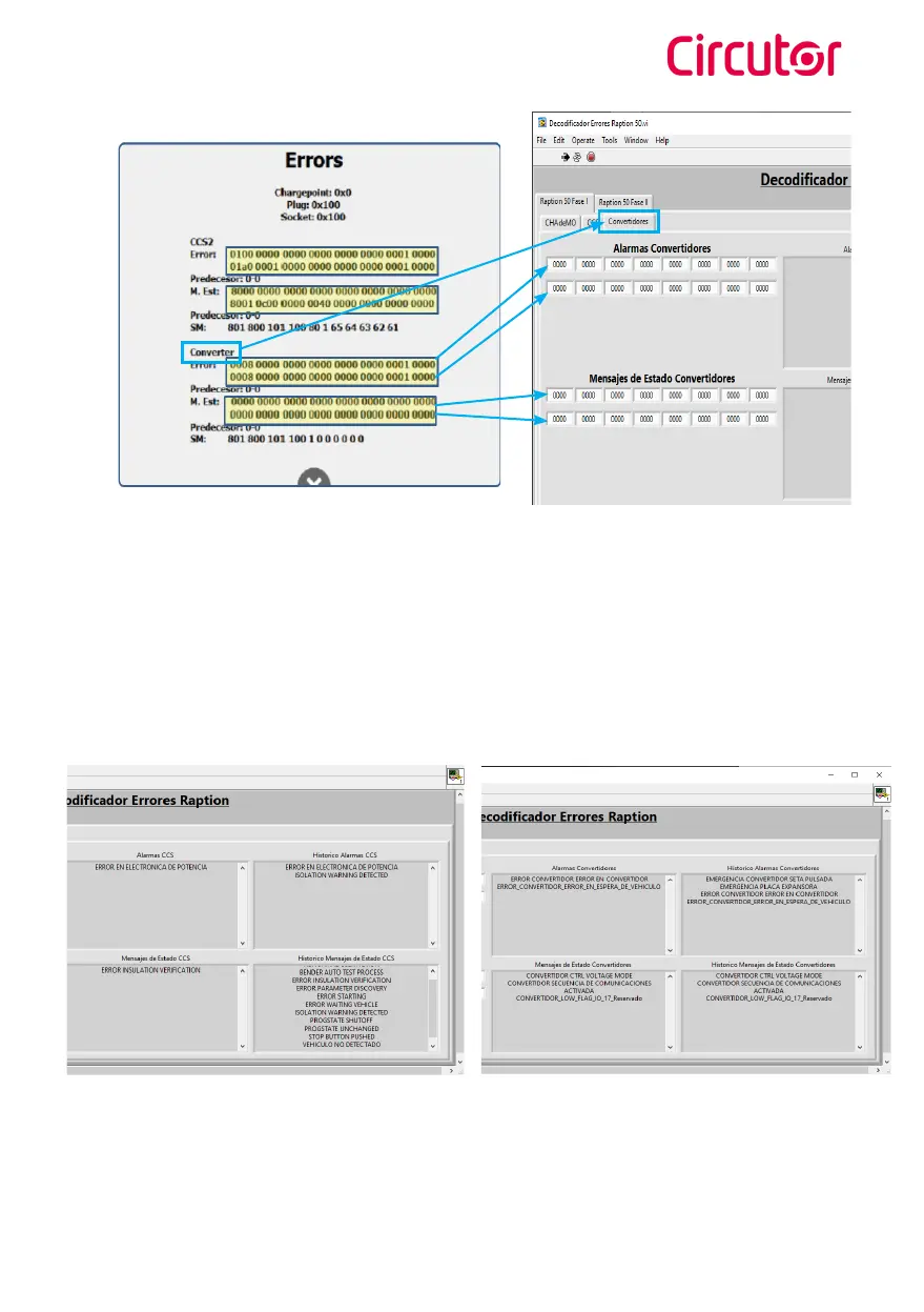 It is shown the current error (or alarm) and the historical. In some cases, historical is