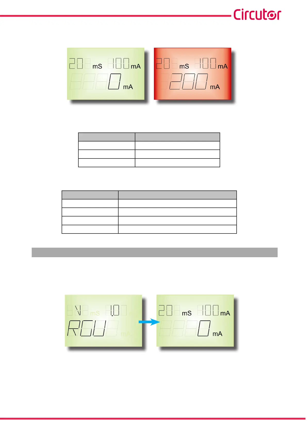 The display shows the delay and sensitivity settings as well as the instant leakage current reading.